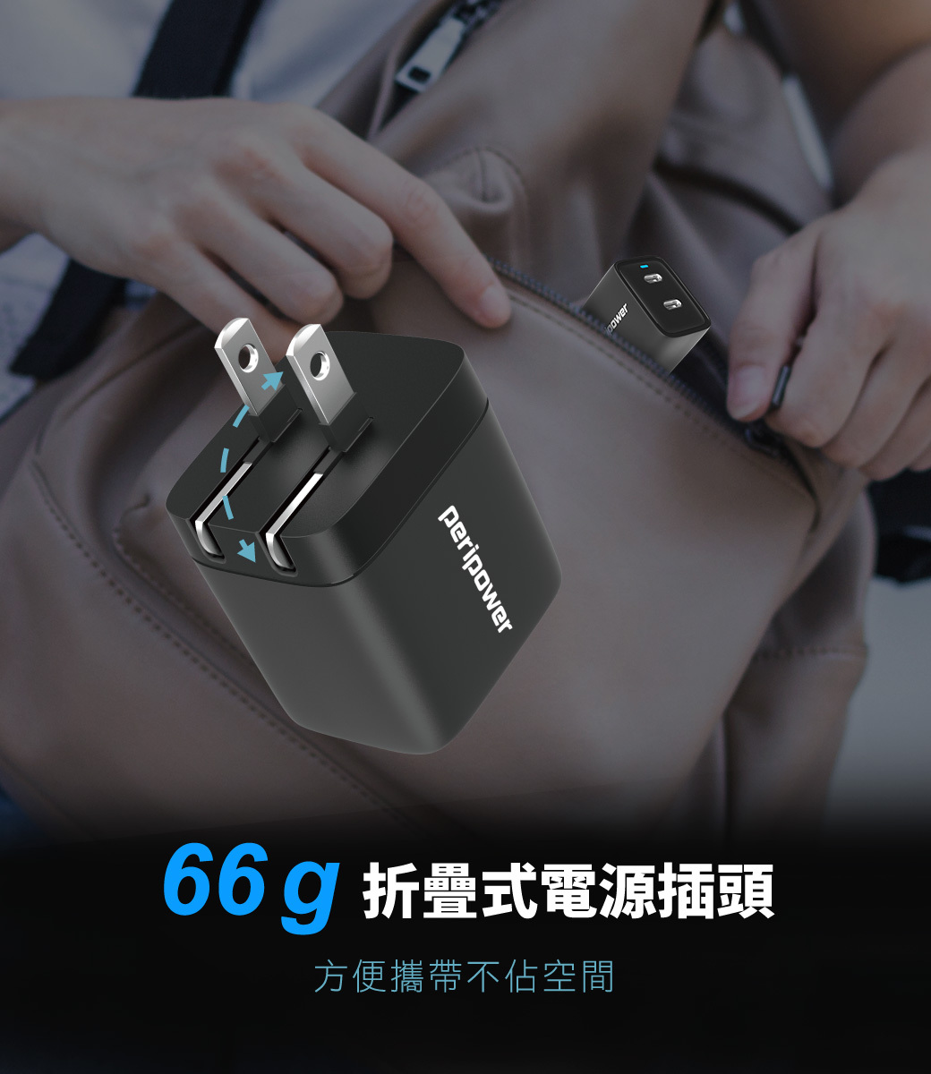 .超輕量 66g 搭配折疊式插頭,方便攜帶輕巧無負擔