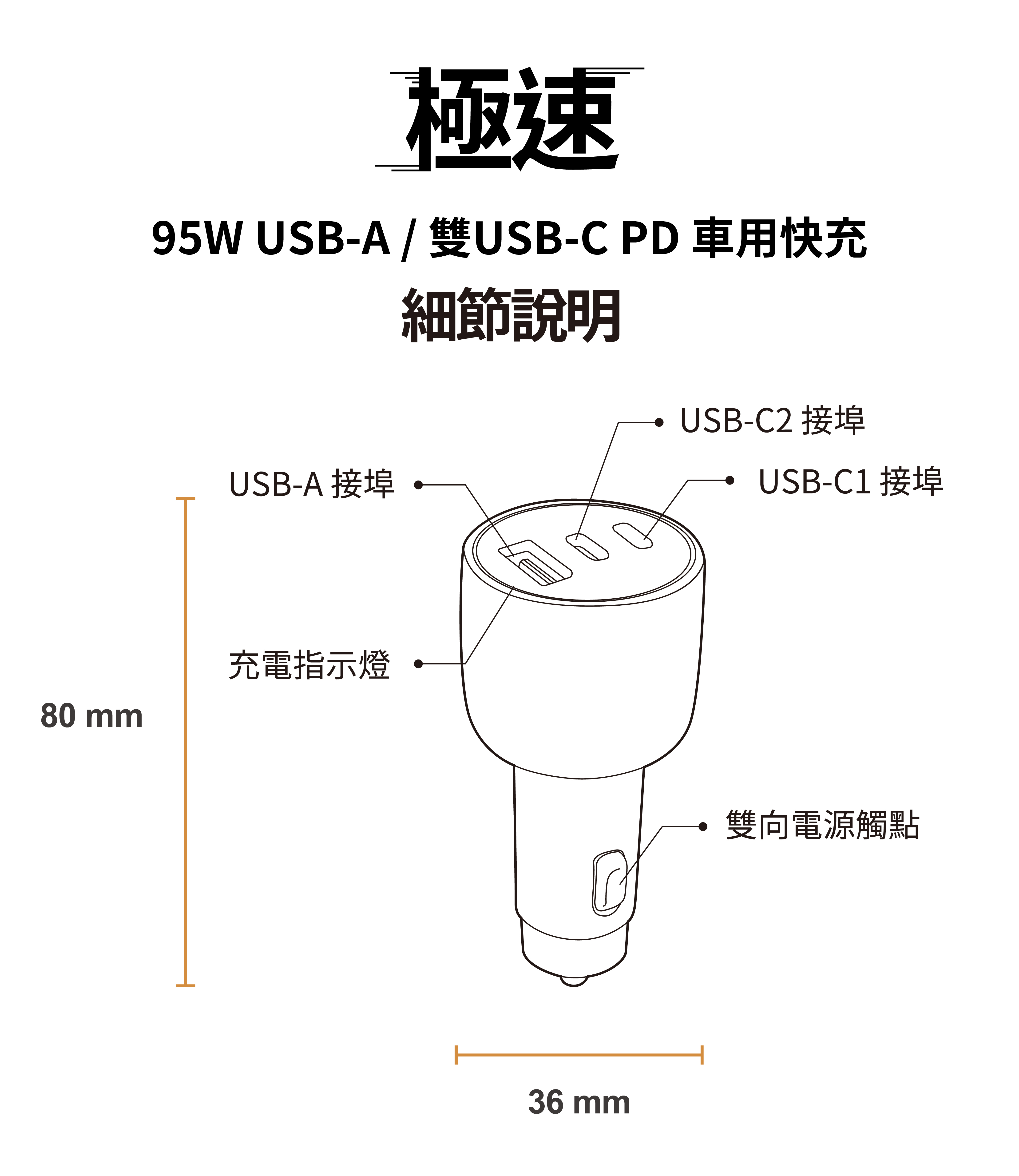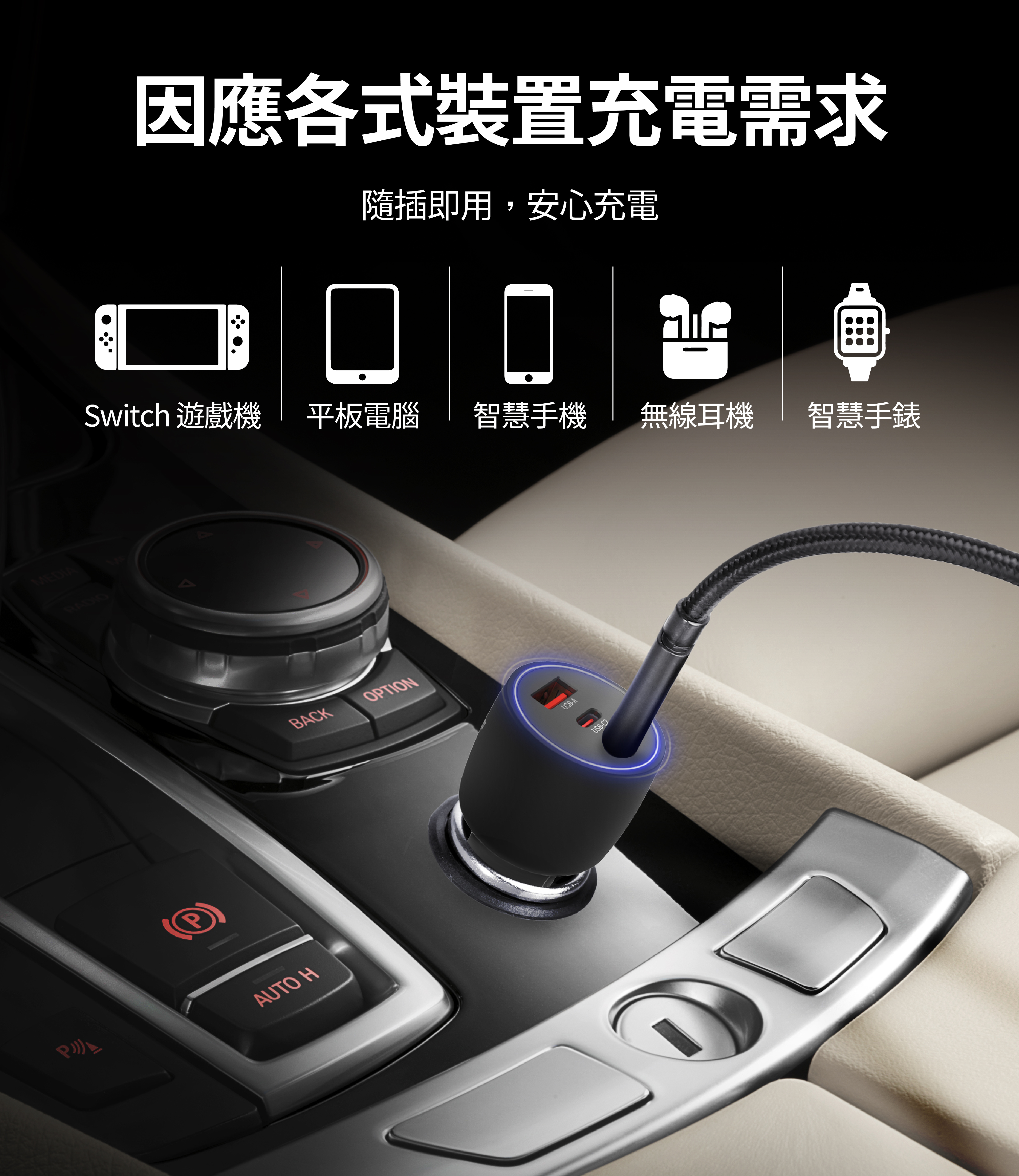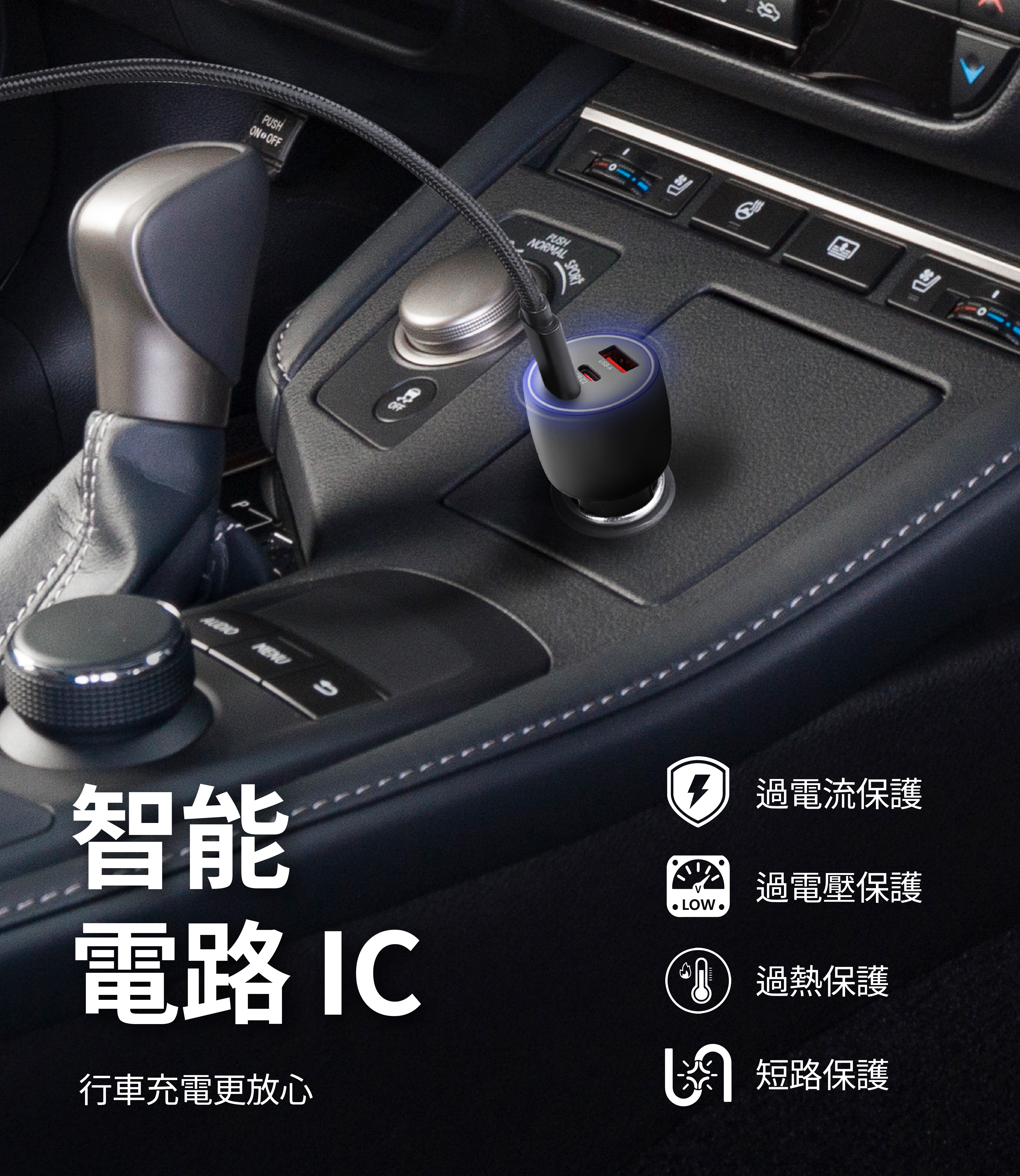 .智能電路 IC,自動辨識裝置給予最適電流/電壓,預防過溫、過載、過充、短路等狀況,行車充電更放心