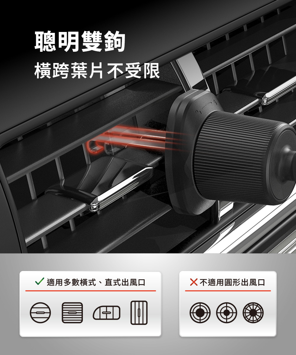 .倒鉤長度可調節,適用於大多數橫式/直式出風口樣式