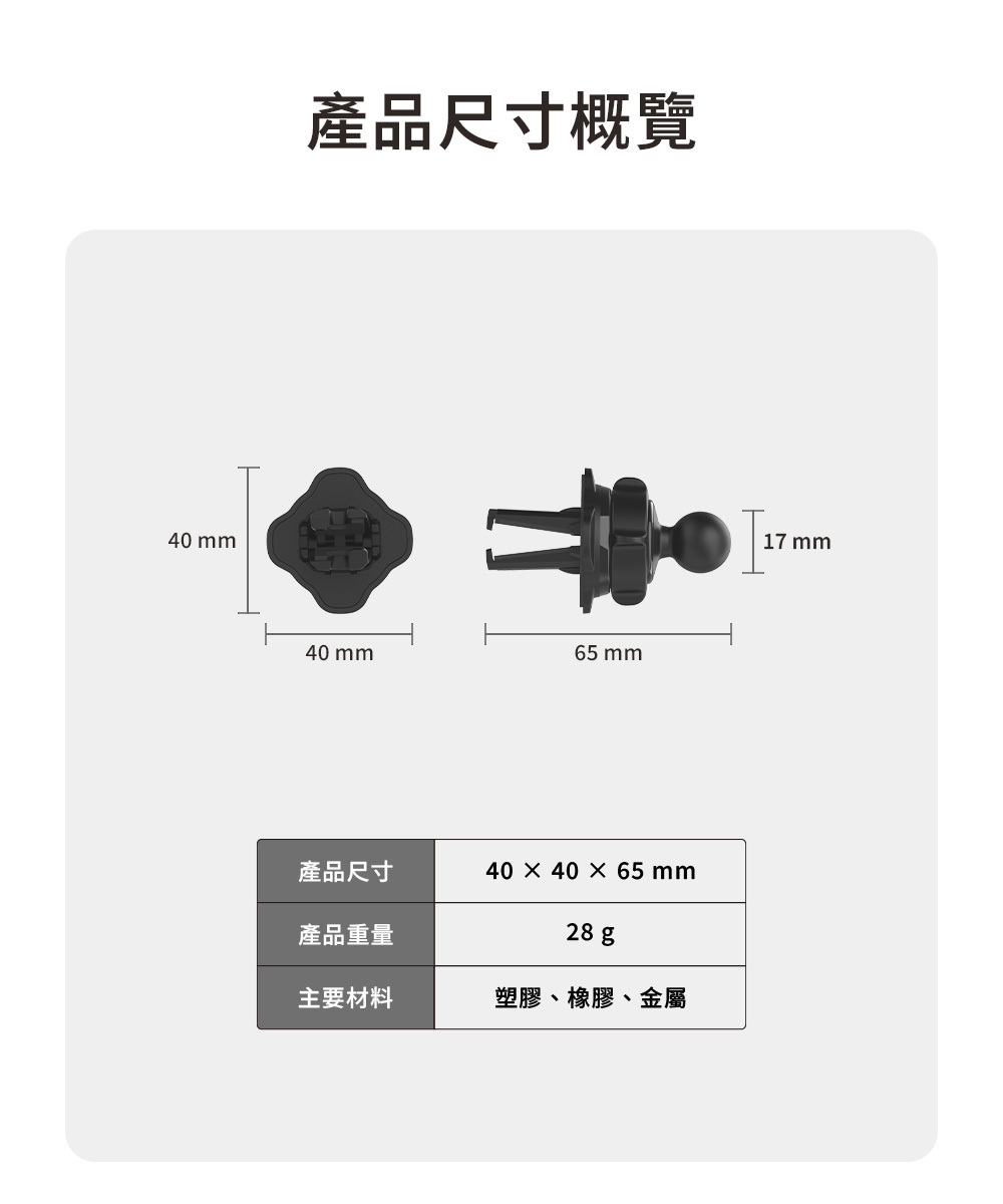 .可搭配 17 mm 球窩的手機架
