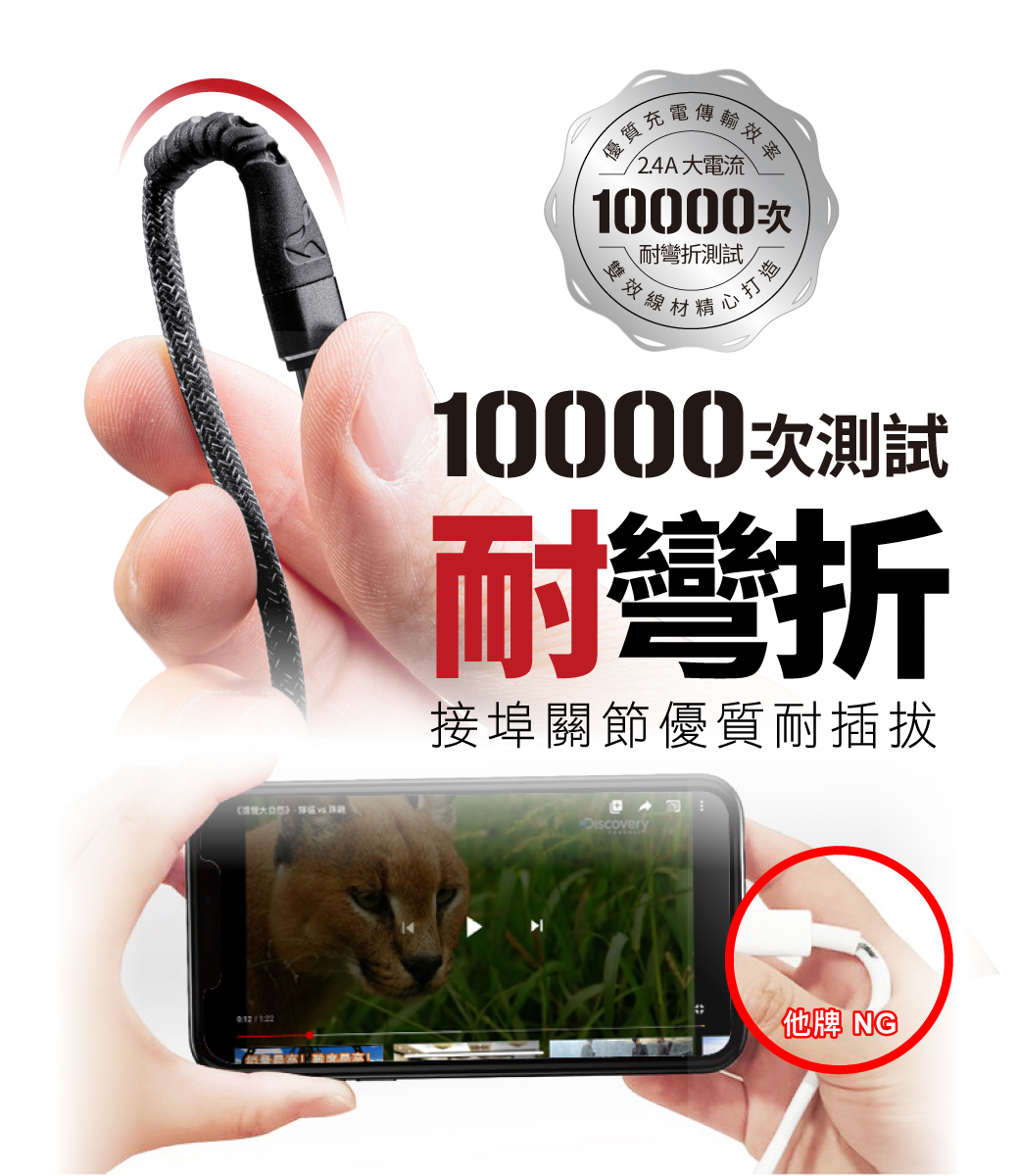 .強化 SR 接埠關節,通過一萬次彎折測試,優質耐插拔保證
