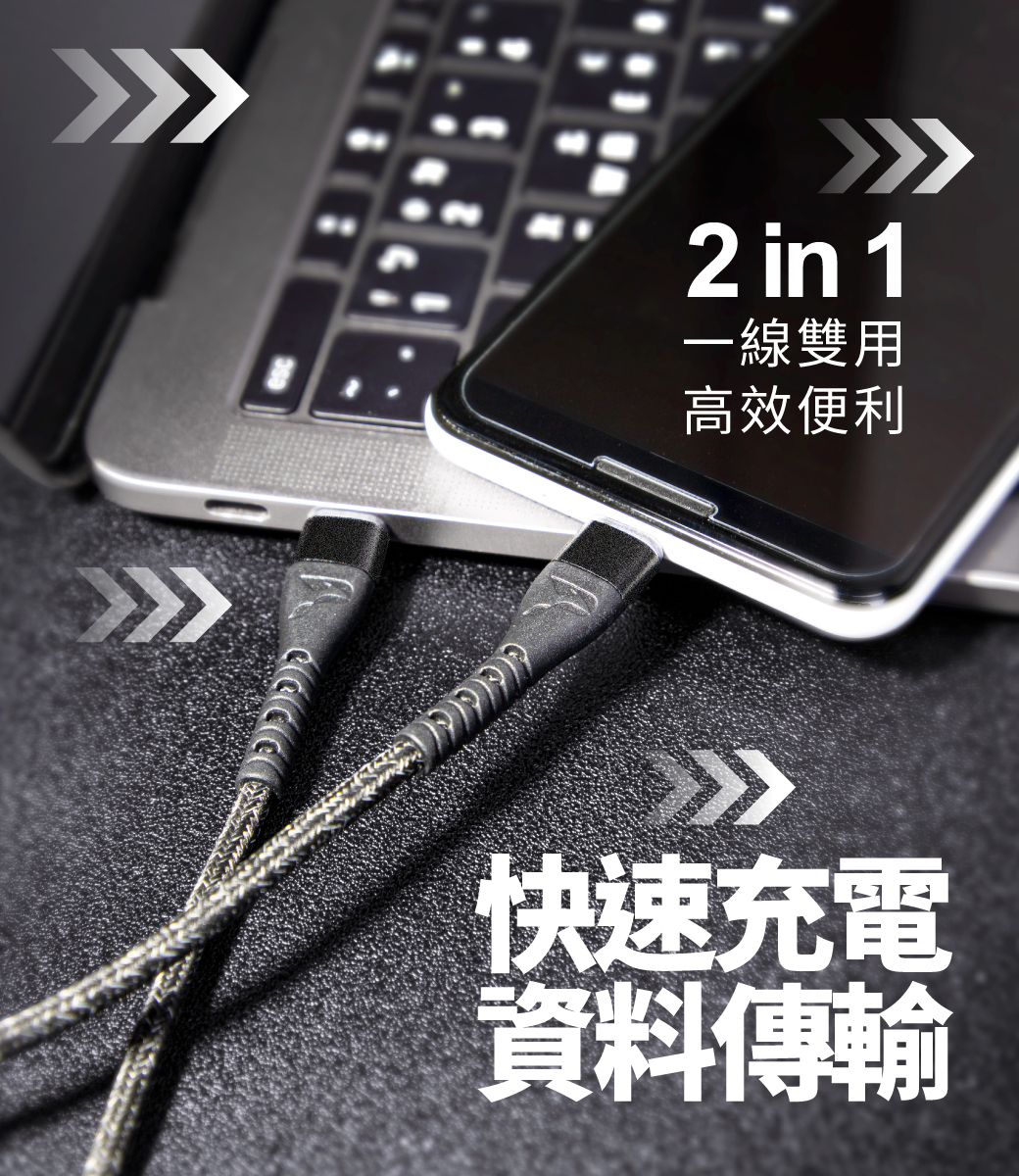 .充電傳輸功能二合一,一線雙用高效便利