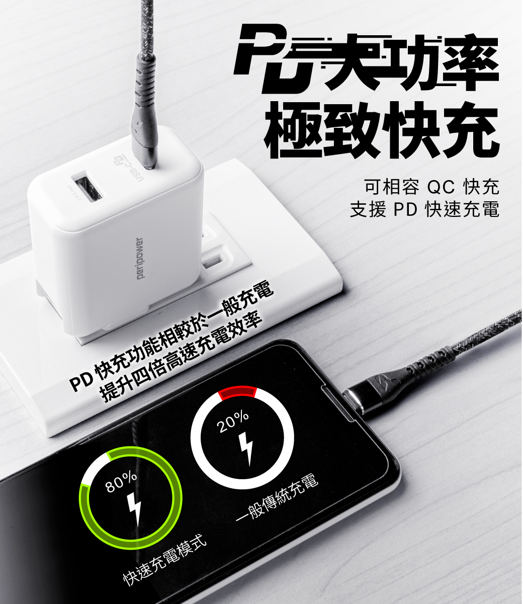 .支援 PD 快速充電,可相容 QC 快充及其他各家快充協定