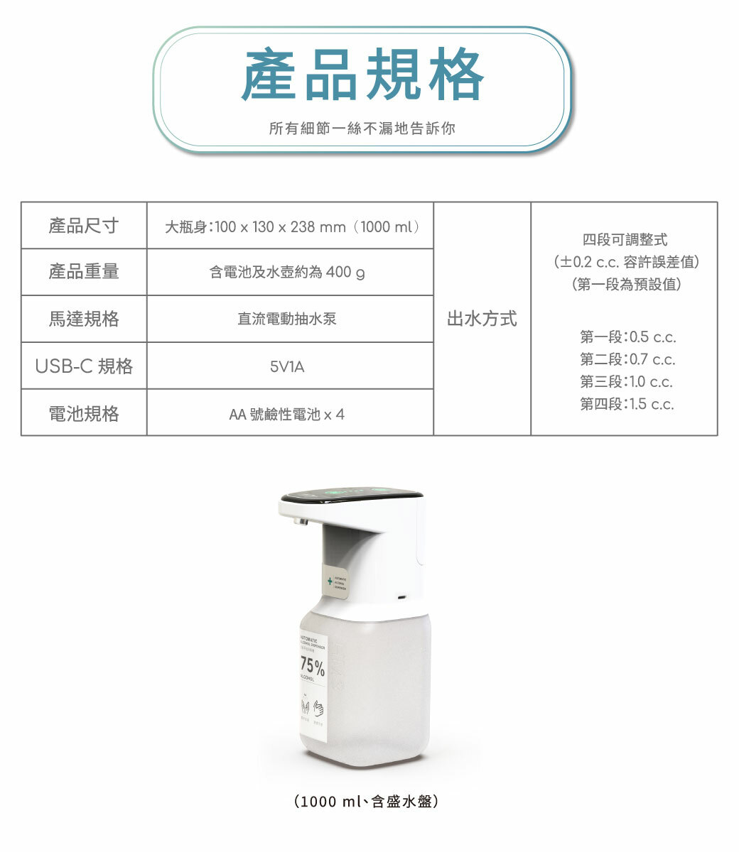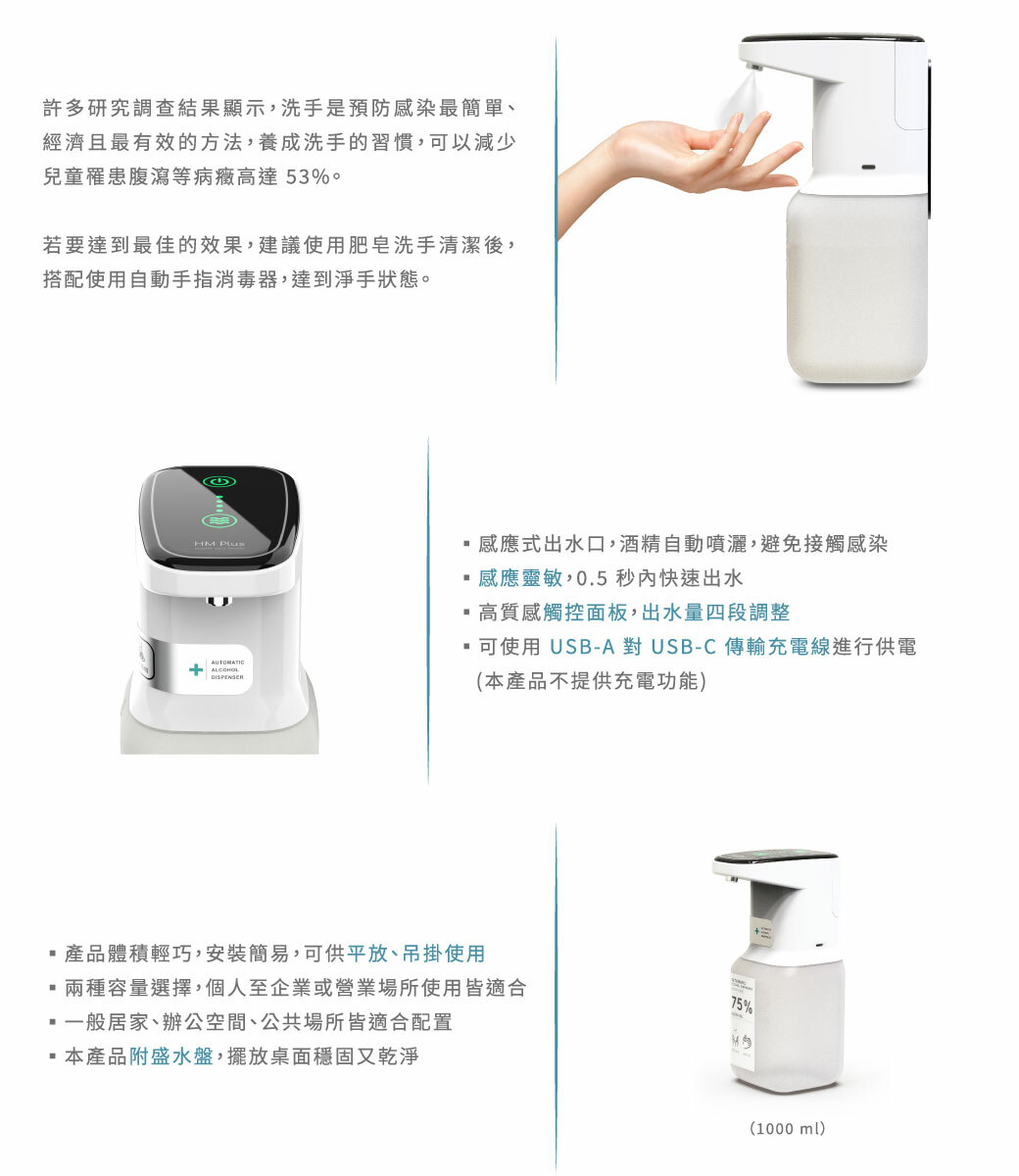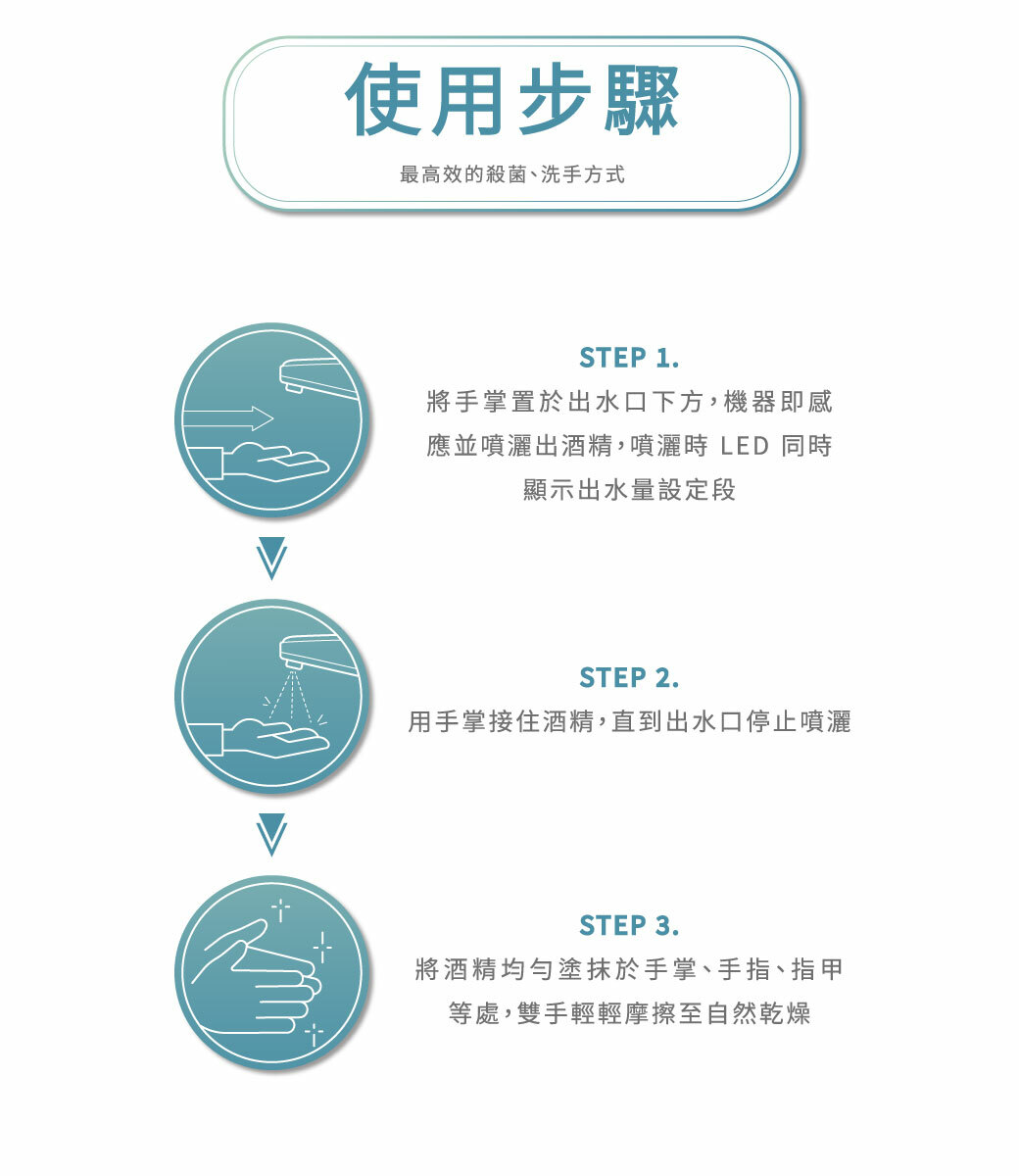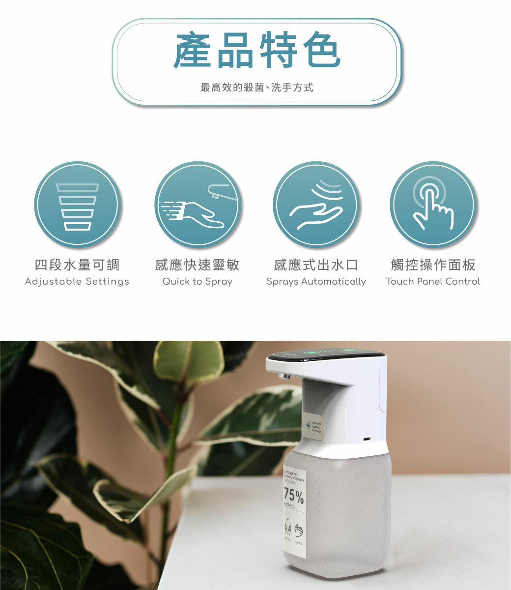 .感應式出水口,酒精自動噴灑,避免接觸感染