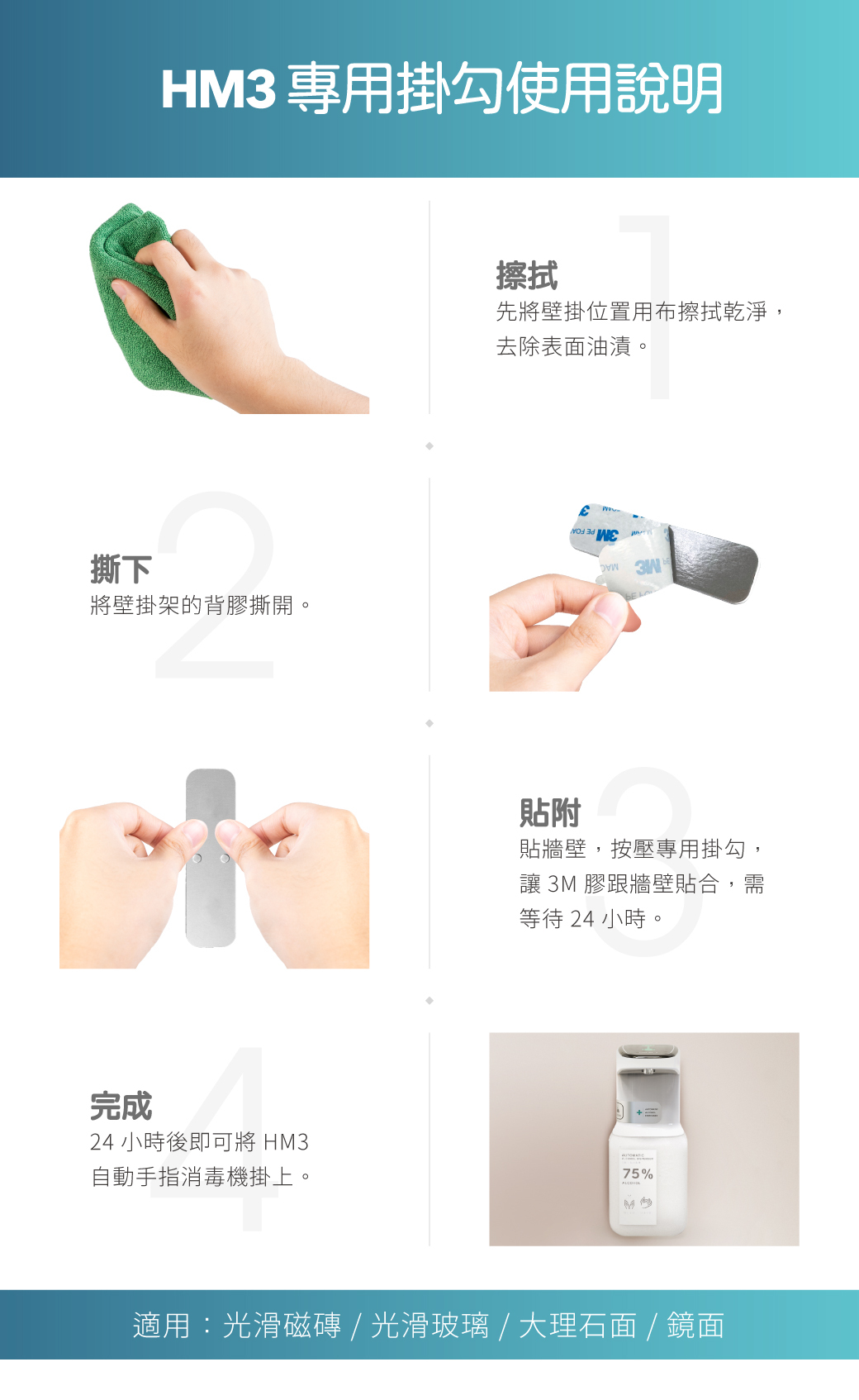 3、24 小時後即可將 HM3 自動手指消毒機掛上。