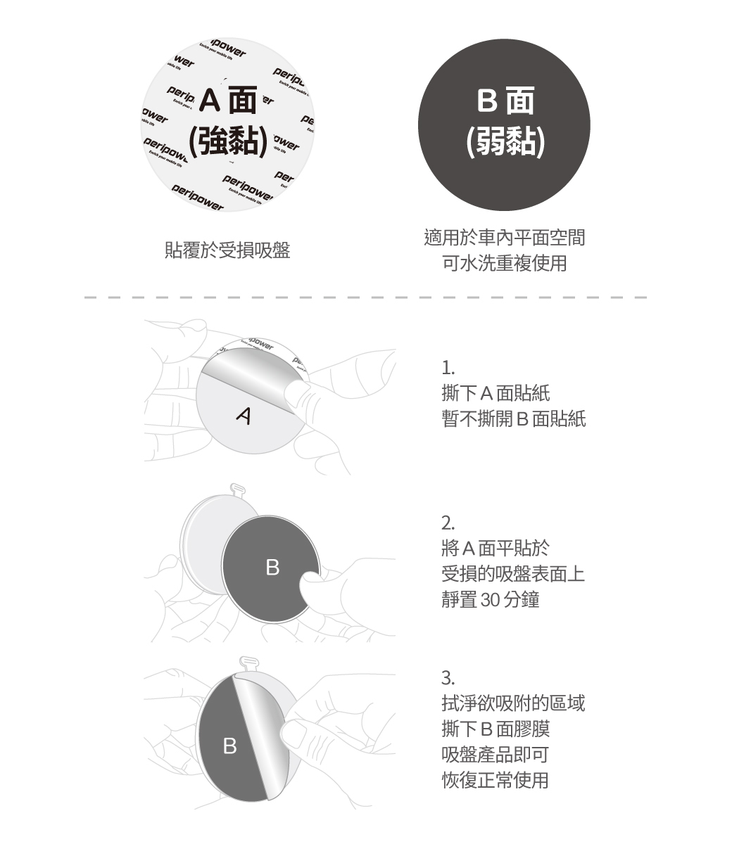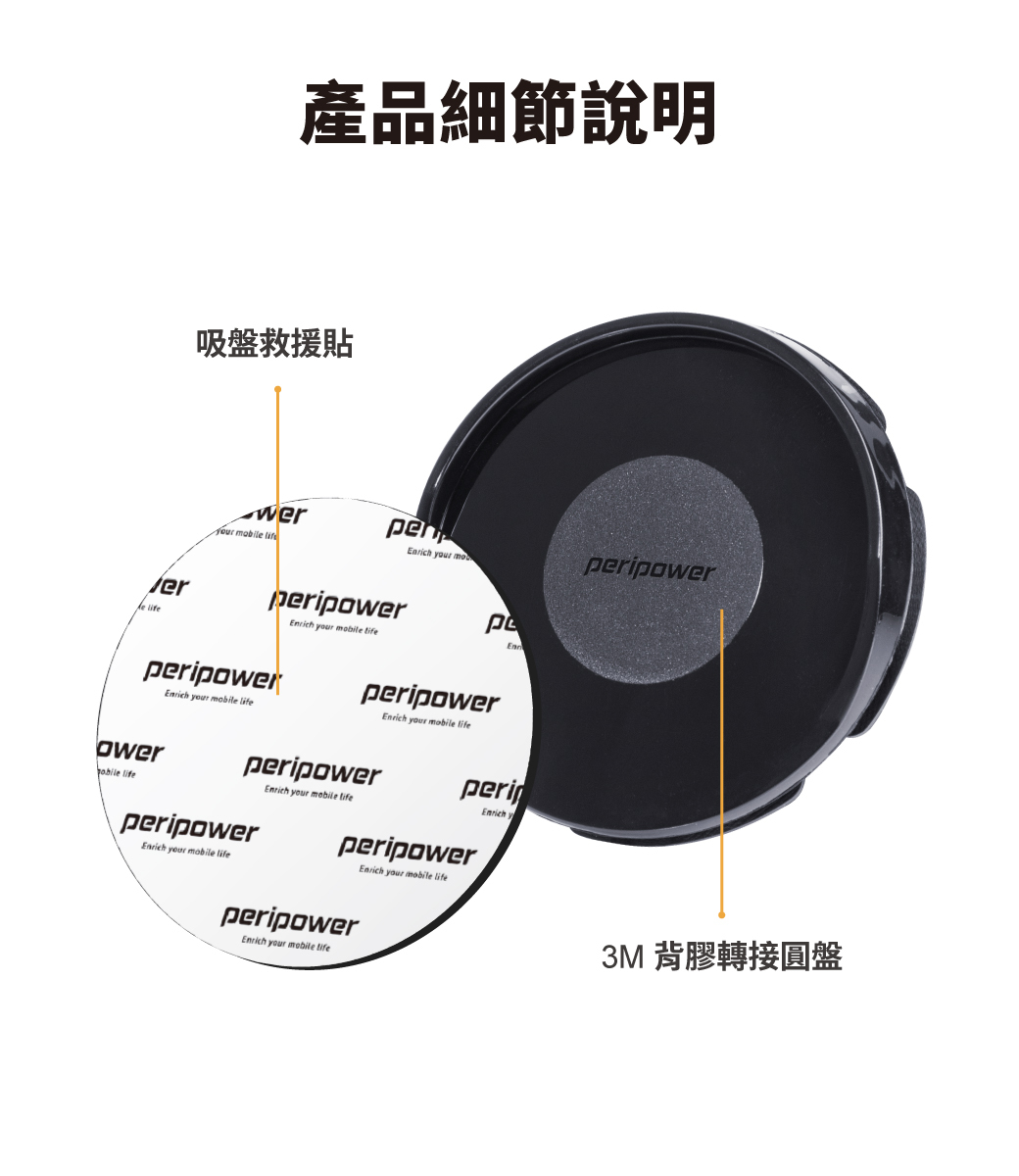 .MT-AM09-吸盤救援貼黑色(PU) x 1、 3M 背膠轉接圓盤(PA) x 1