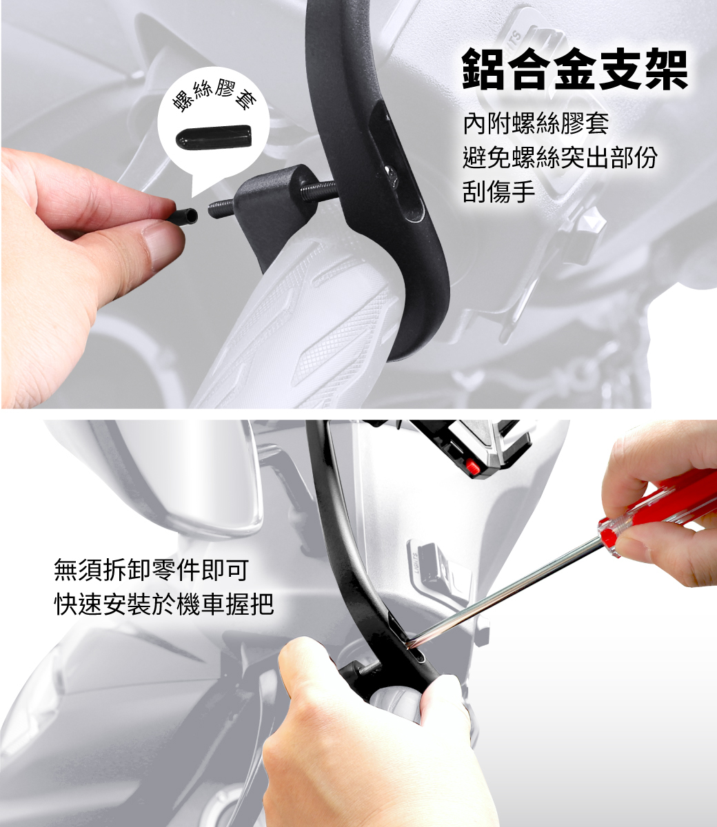 .安裝於機車左邊握把的內側,不影響握持,空間有效利用