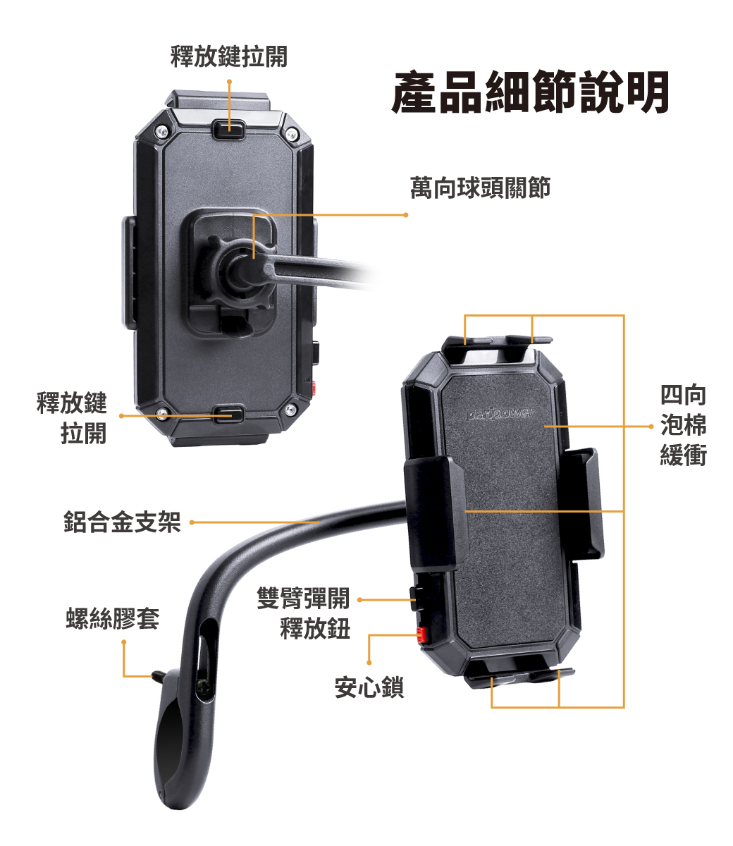 .夾具側邊安心鎖貼心設計,一鍵鎖定夾臂,防止夾具彈開