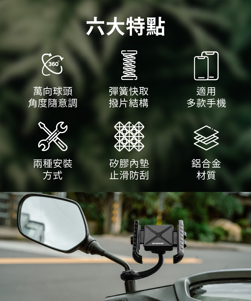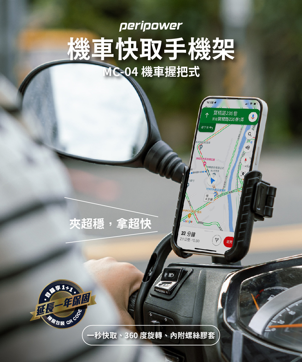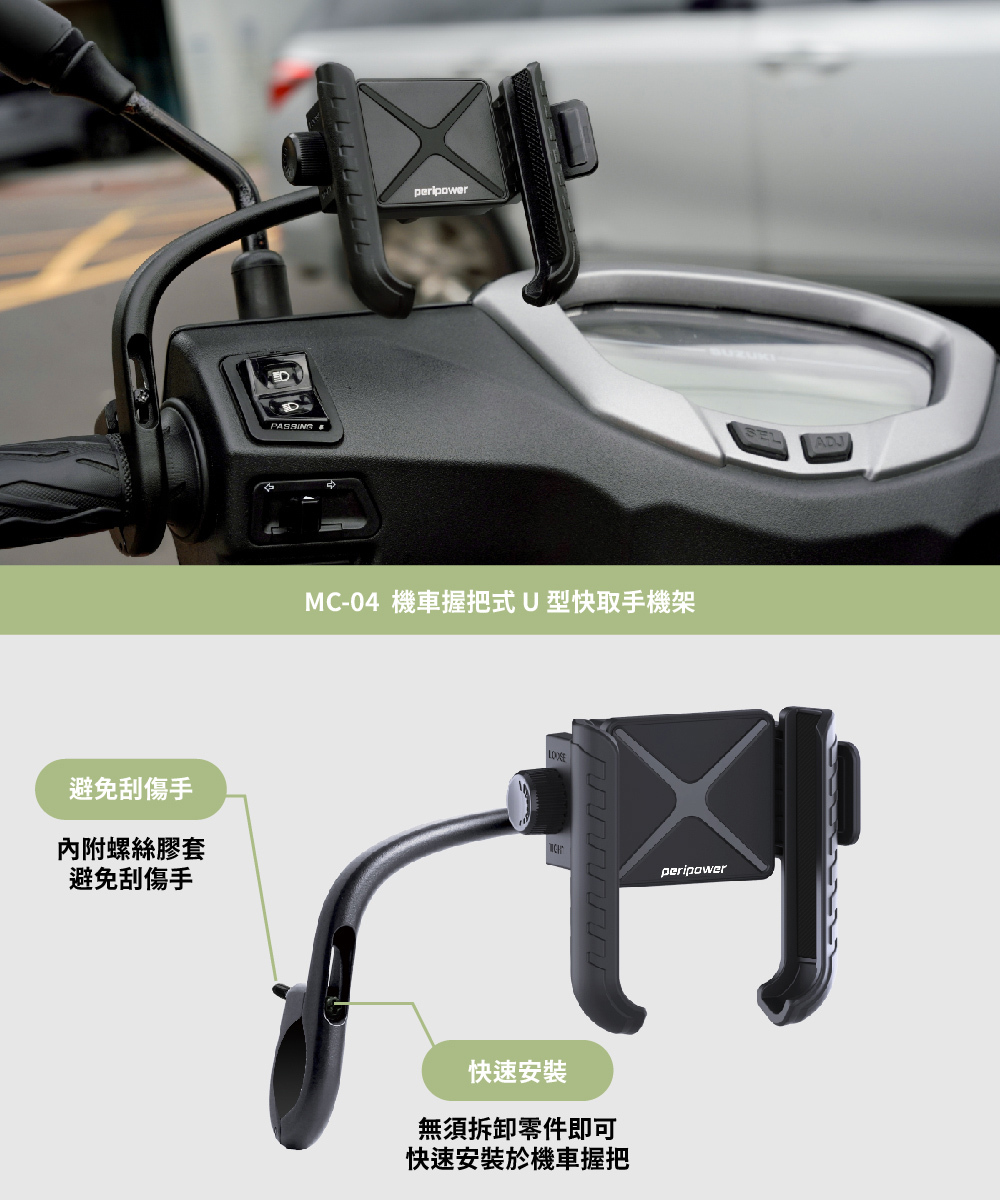 .無須拆卸零件,即可安裝於機車左邊握把的內側,不影響握持,空間有效利用