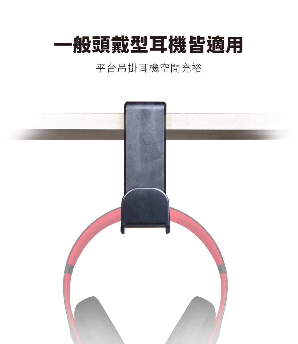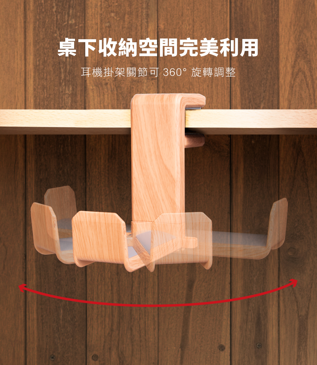 .耳機掛架關節可 360 度旋轉調整,有效利用桌內收納空間