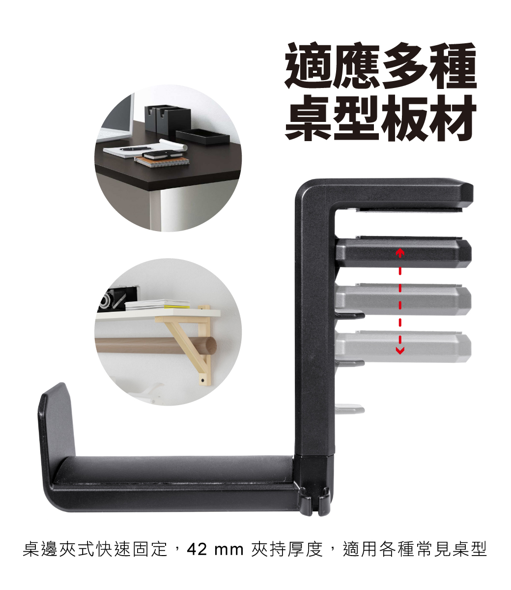 .桌邊夾式快速固定 42 mm 夾持厚度・適用各種常見桌型