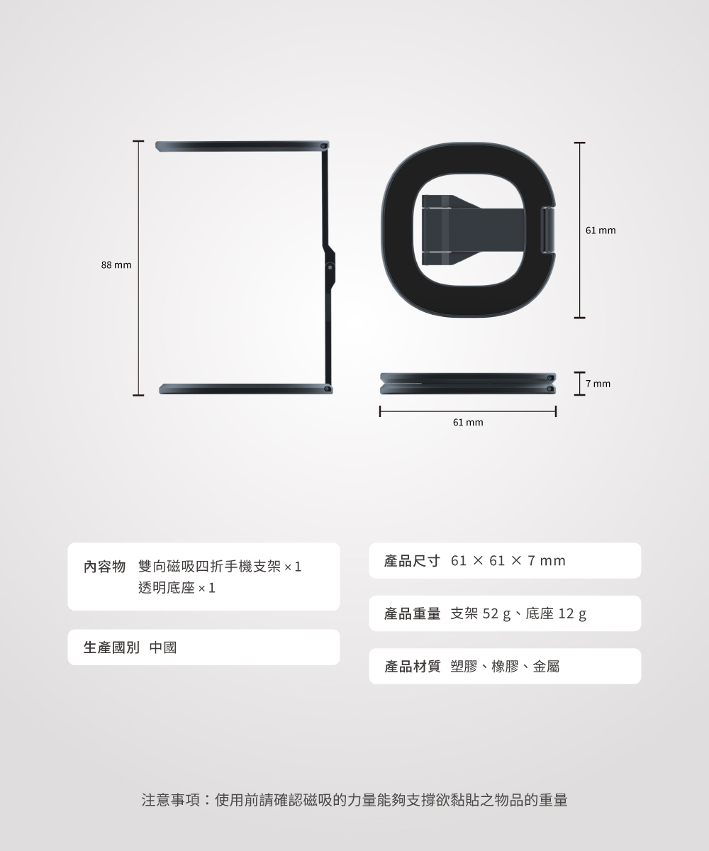 .吸附於手機:相對磁吸充電區域,將手機放在支架上,磁吸正確吸附