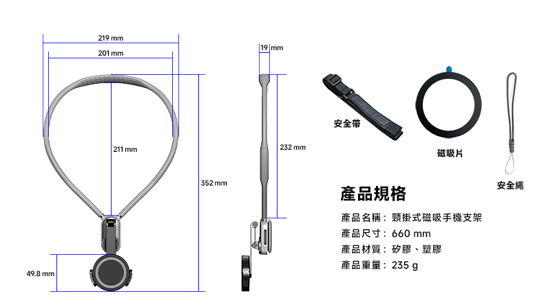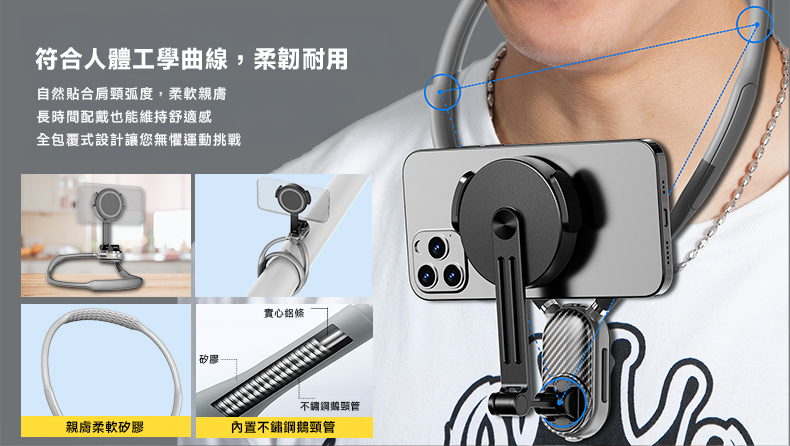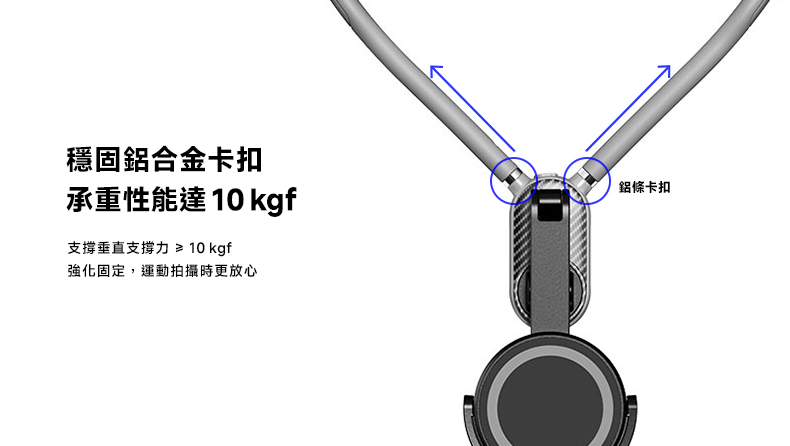 .頸掛鋁合金卡扣,承重性能達 10kgf