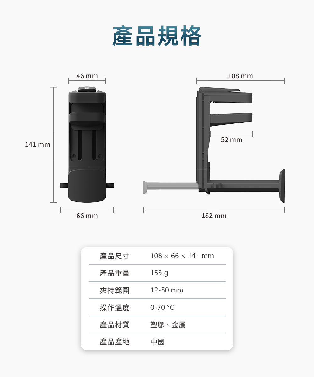 .旋鈕固定 12-50 mm 夾持厚度,適用各種常見桌型
