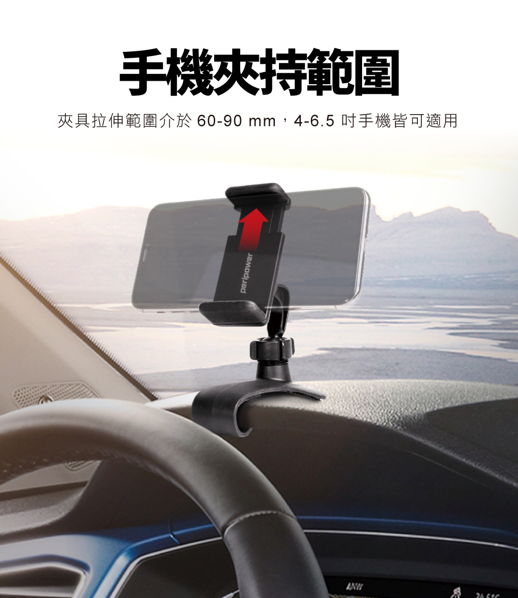 .4-6.7 吋手機皆適用,夾具拉伸範圍介於 62-90 mm