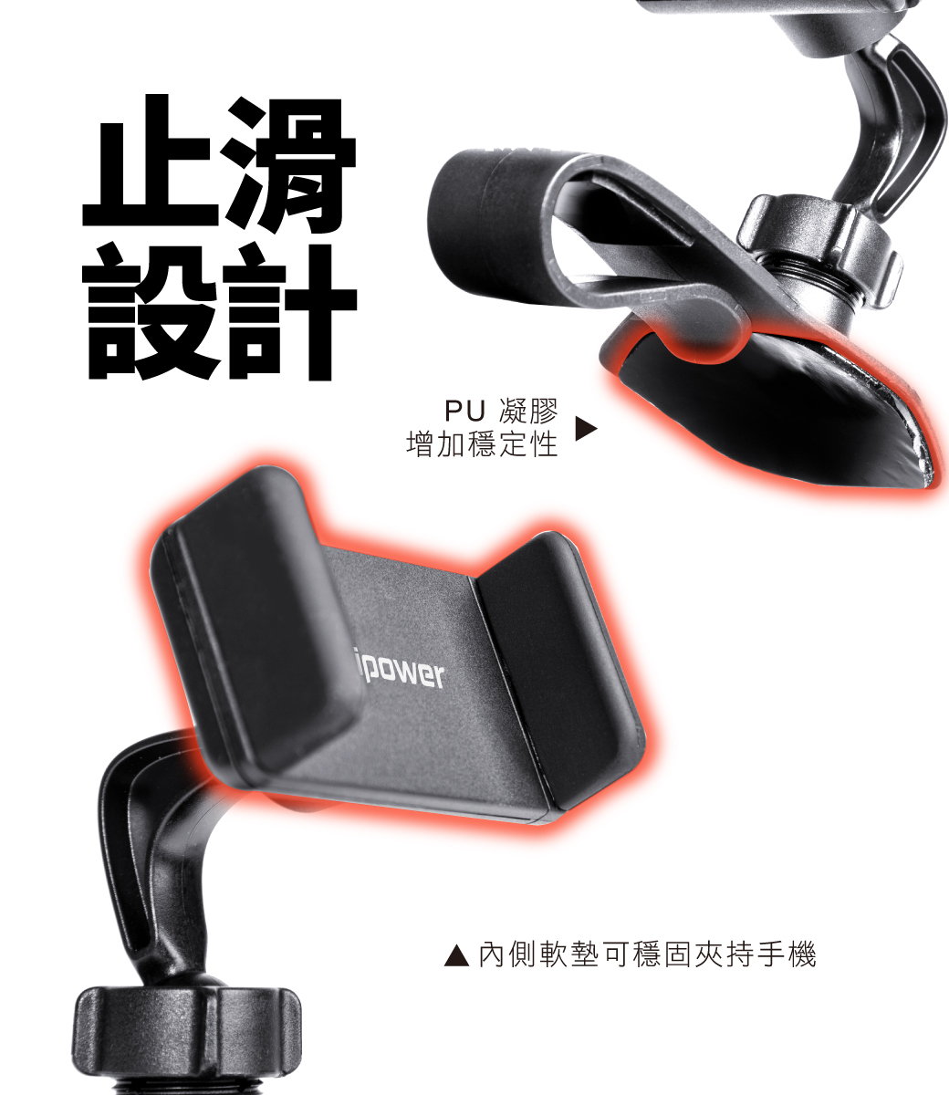 .主體夾持處具止滑設計,不用擔心支架滑落