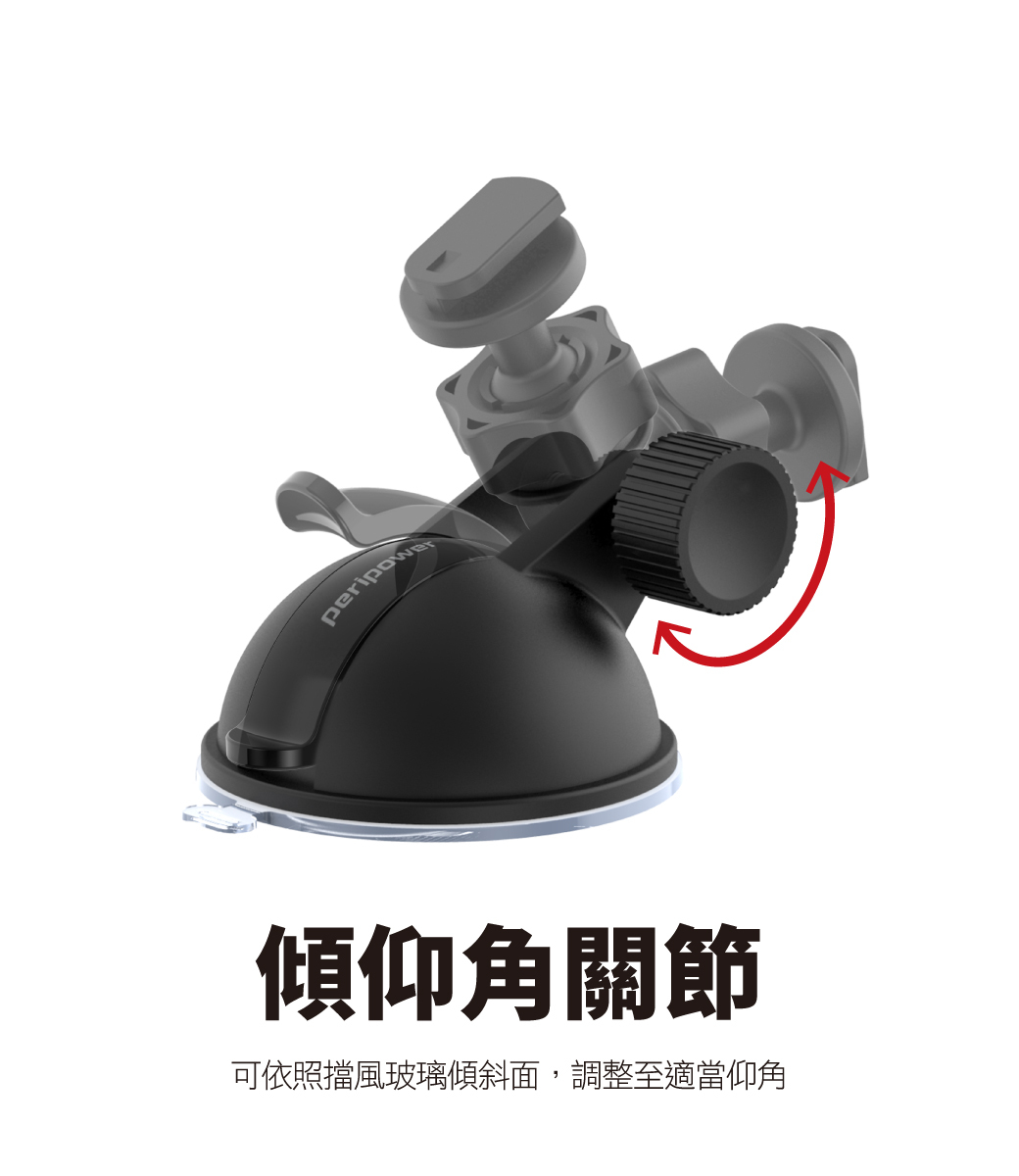 .傾仰角關節,可依照擋風玻璃傾斜面,調整至適當仰角