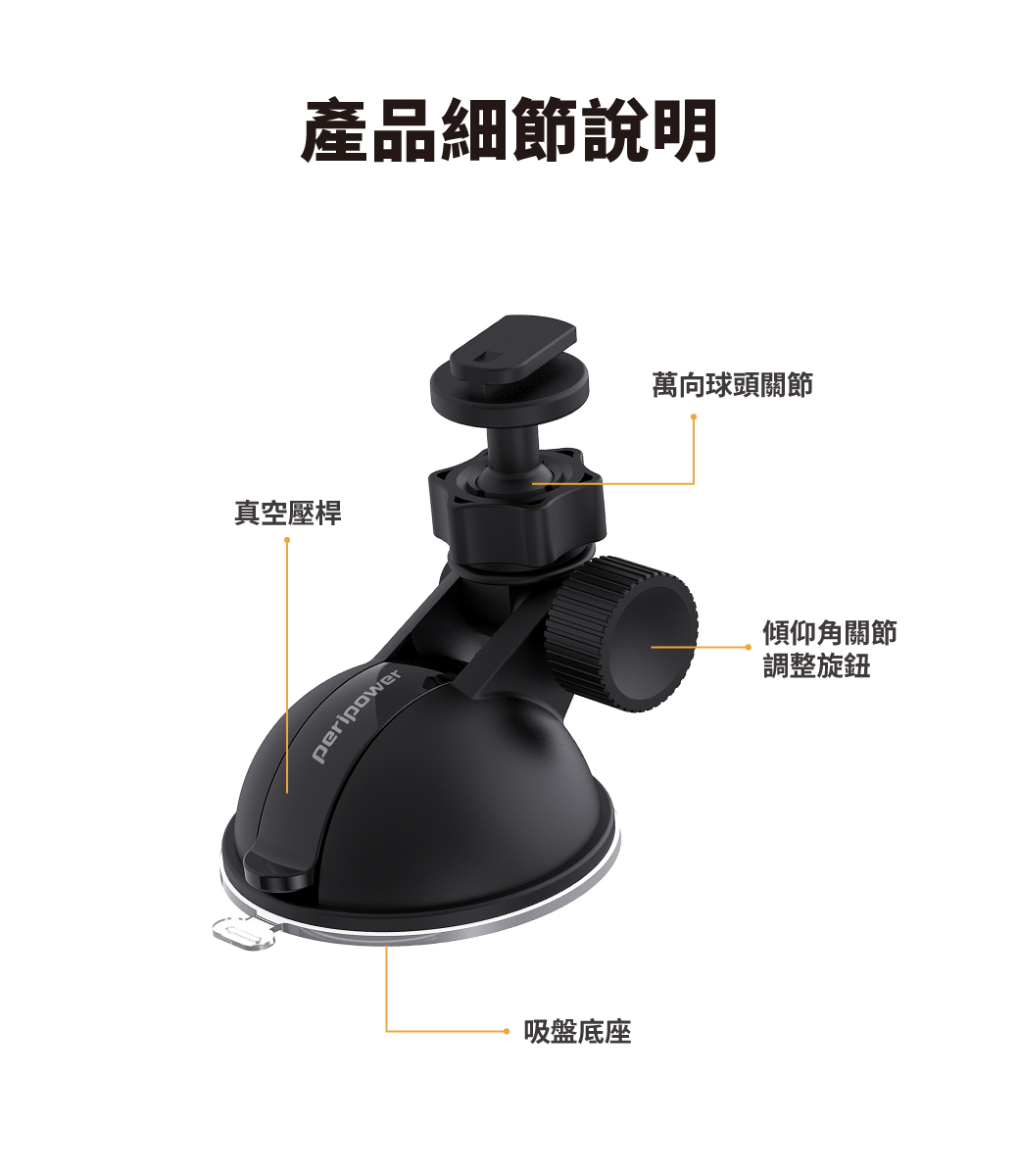 .真空壓桿吸盤底座,可固定於前擋風玻璃