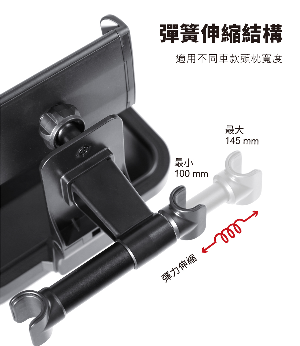 .彈簧伸縮結構,不須拆卸頭枕一秒拆裝,適用不同車款頭枕寬度