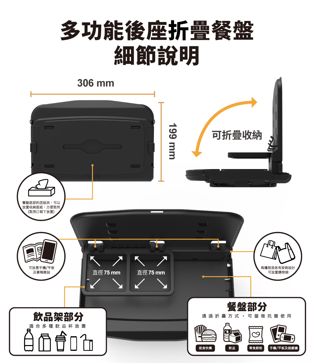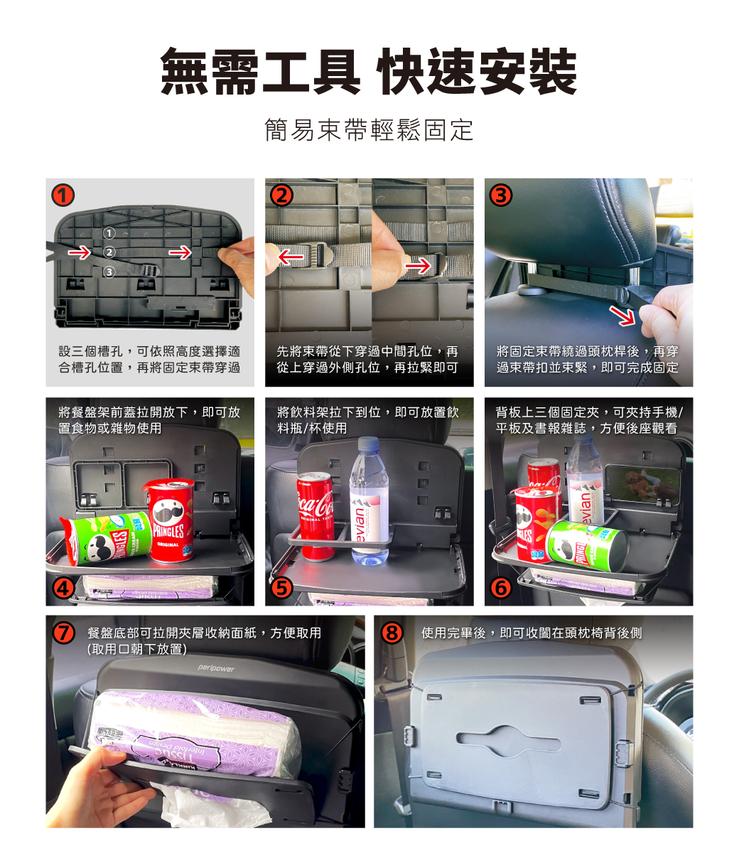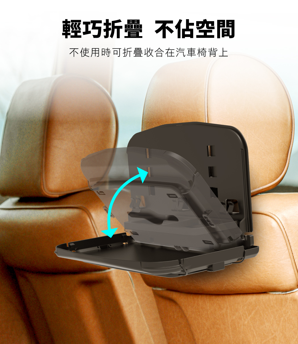 .不使用時可折疊收合在汽車椅背上,輕巧不佔空間