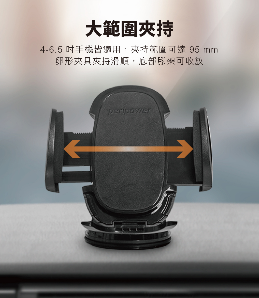.4-6.7 吋手機皆適用,夾持範圍可達 95 mm