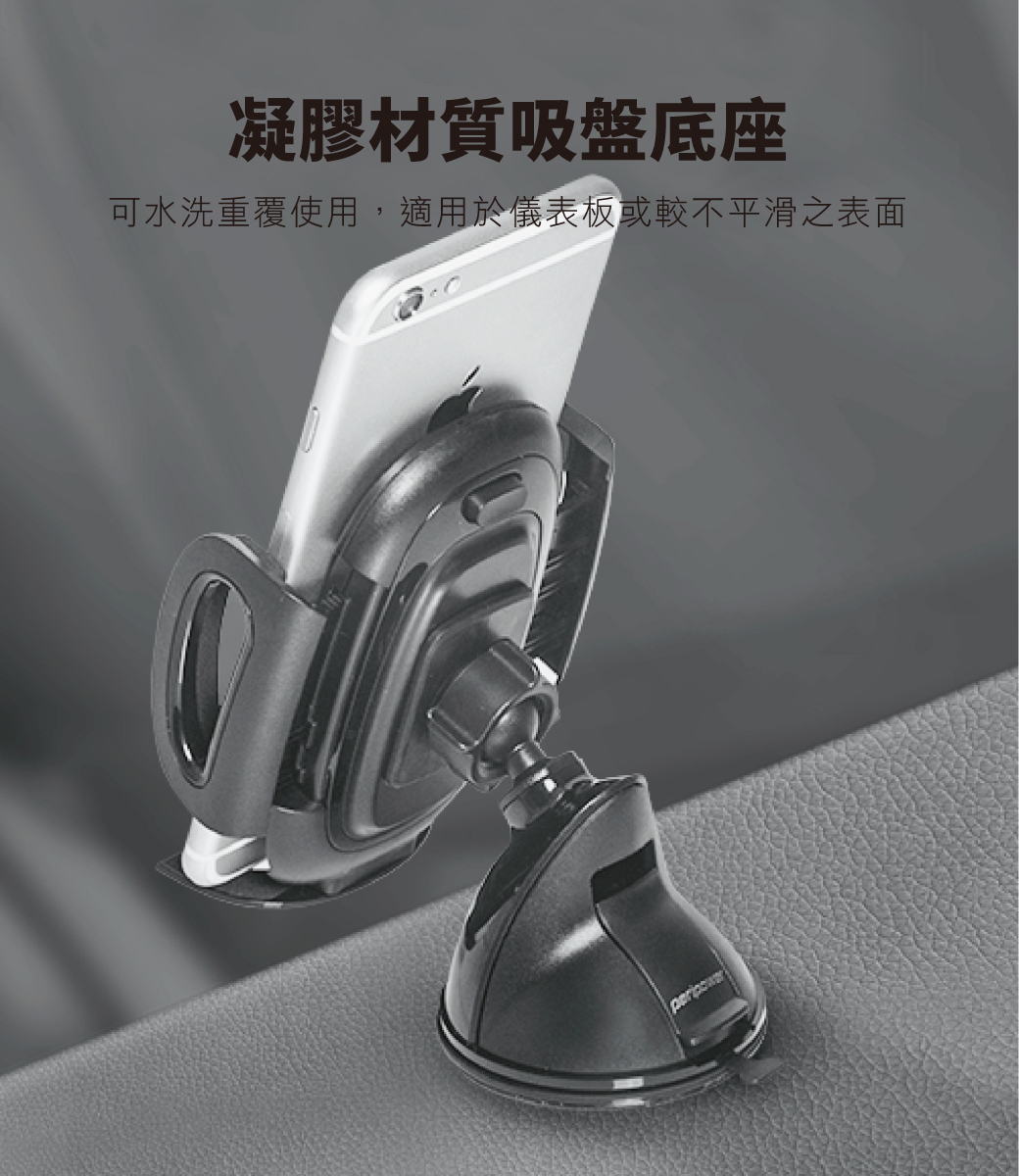.凝膠吸盤底座可水洗重複使用,可用於儀表板或較不平滑之表面