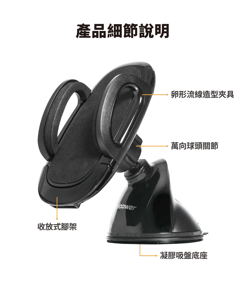 .萬向球頭關節,可 360 度旋轉,輕鬆調整視角