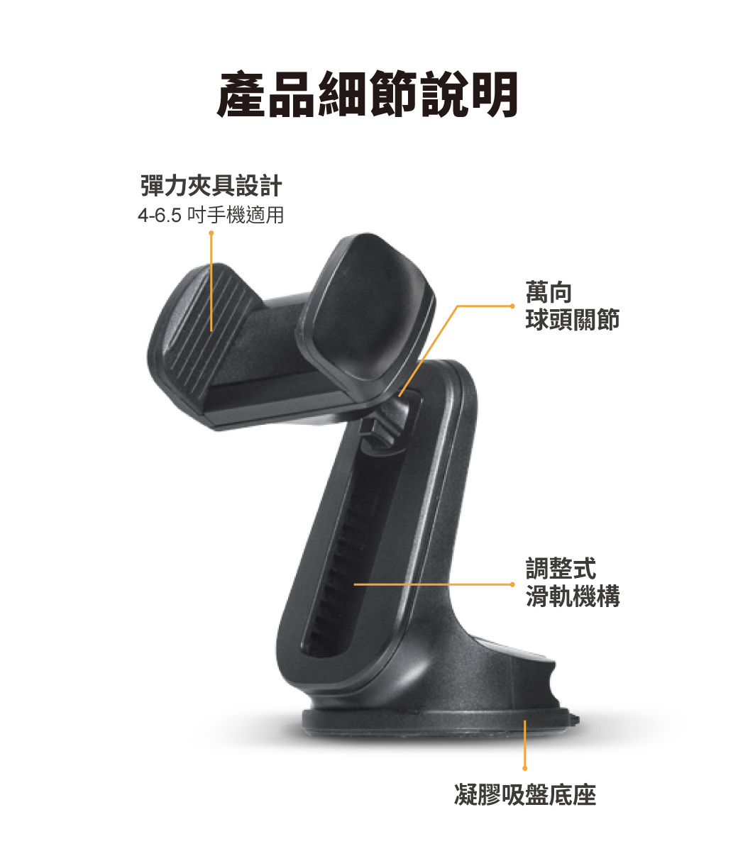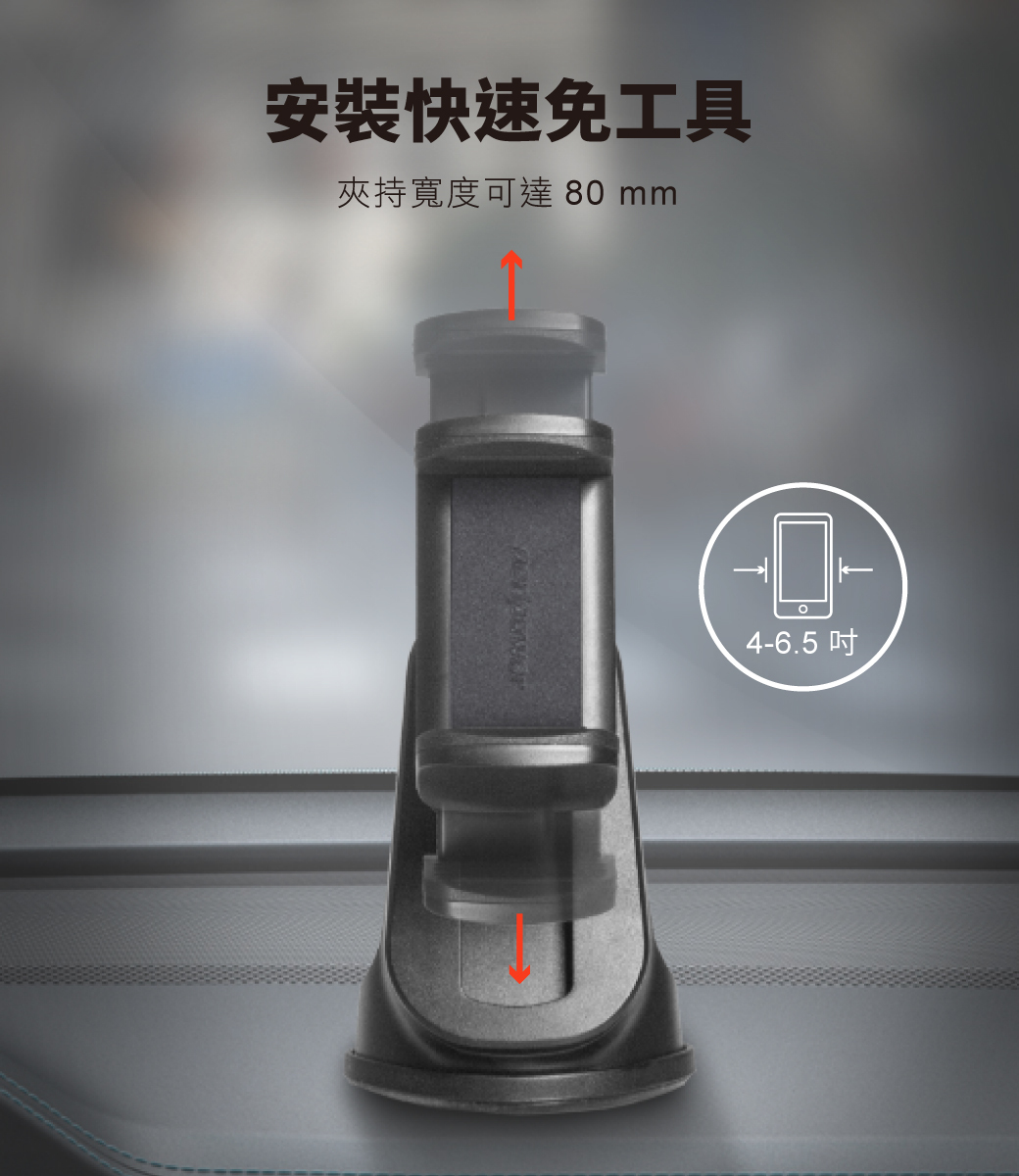 .4-6.5 吋手機適用,夾持寬度可達 80 mm