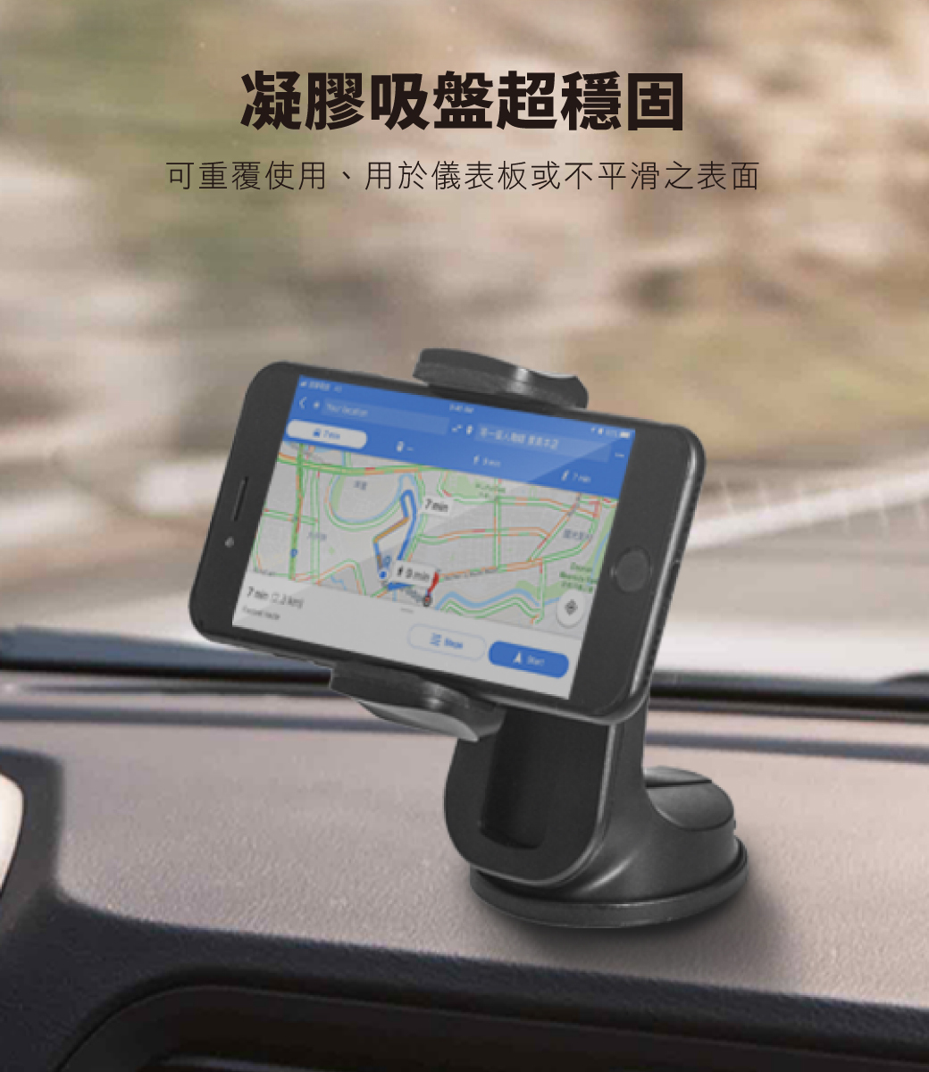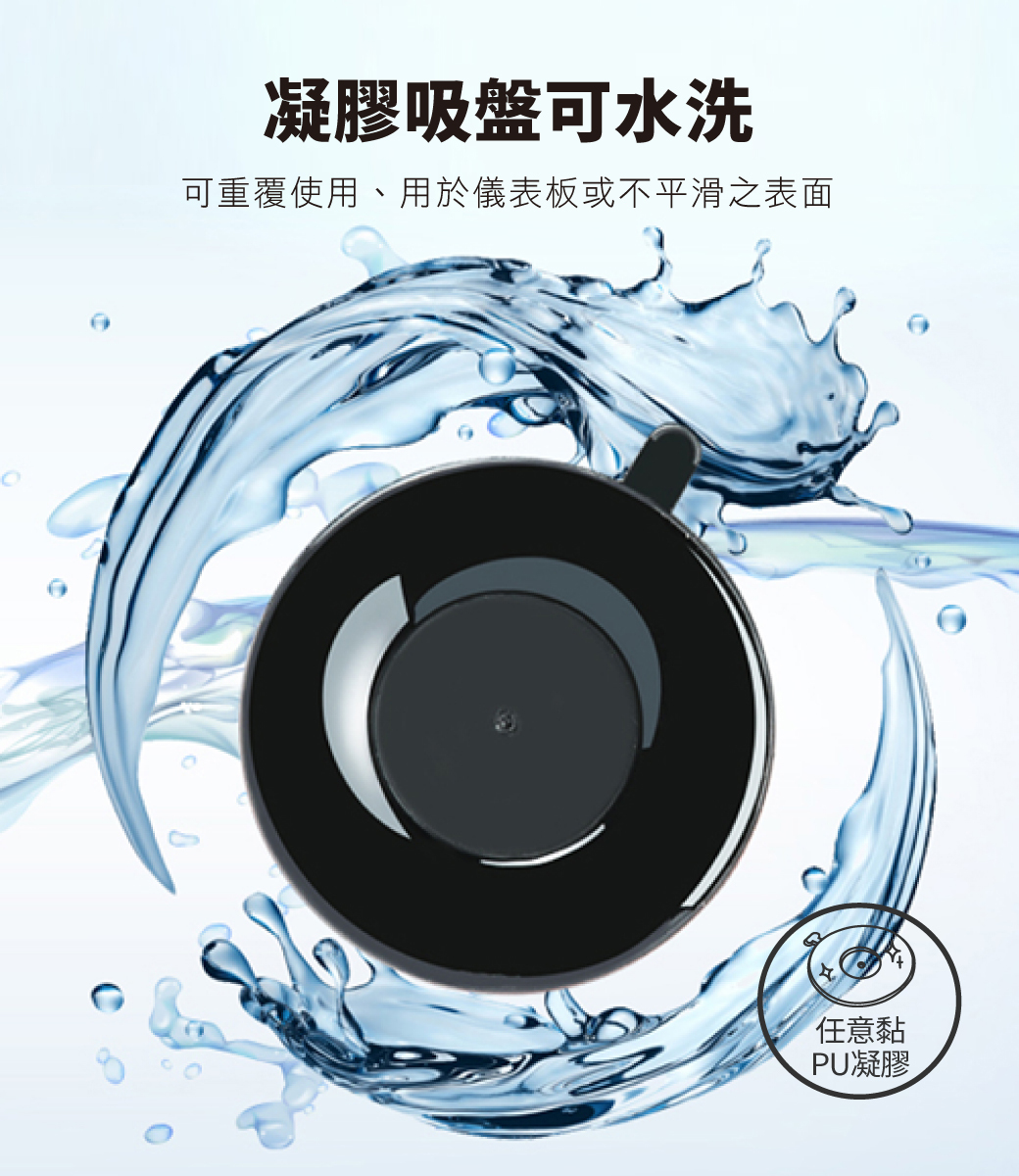 .凝膠吸盤底座可水洗重複使用,可用於儀表板或較不平滑之表面