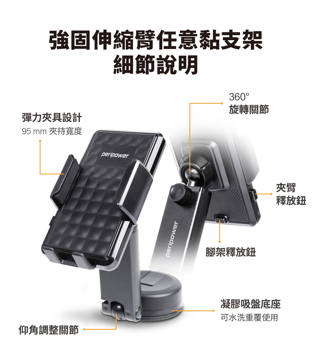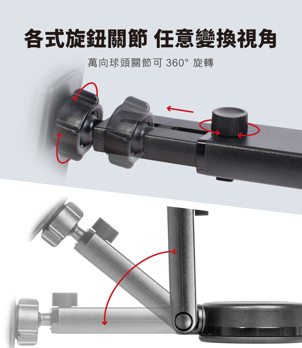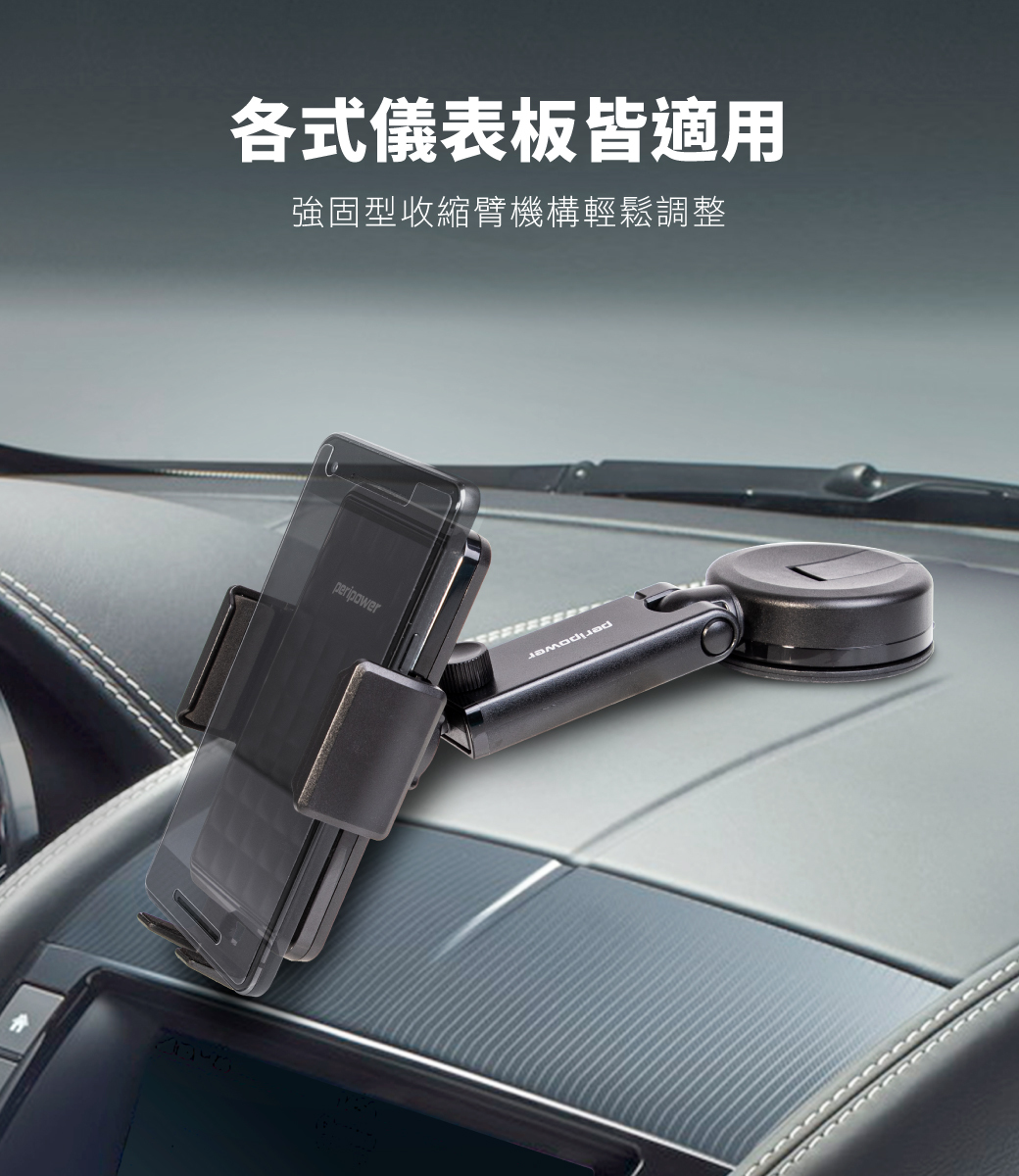 強固型收縮臂機構,因應各式儀表板尺寸造型使用