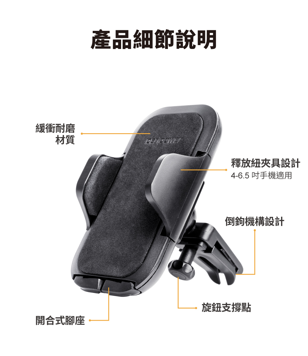 產品尺寸:(手機夾具:40.3 x 33.6 x 69 mm、出風口支架:42 x 34 x 35 mm)