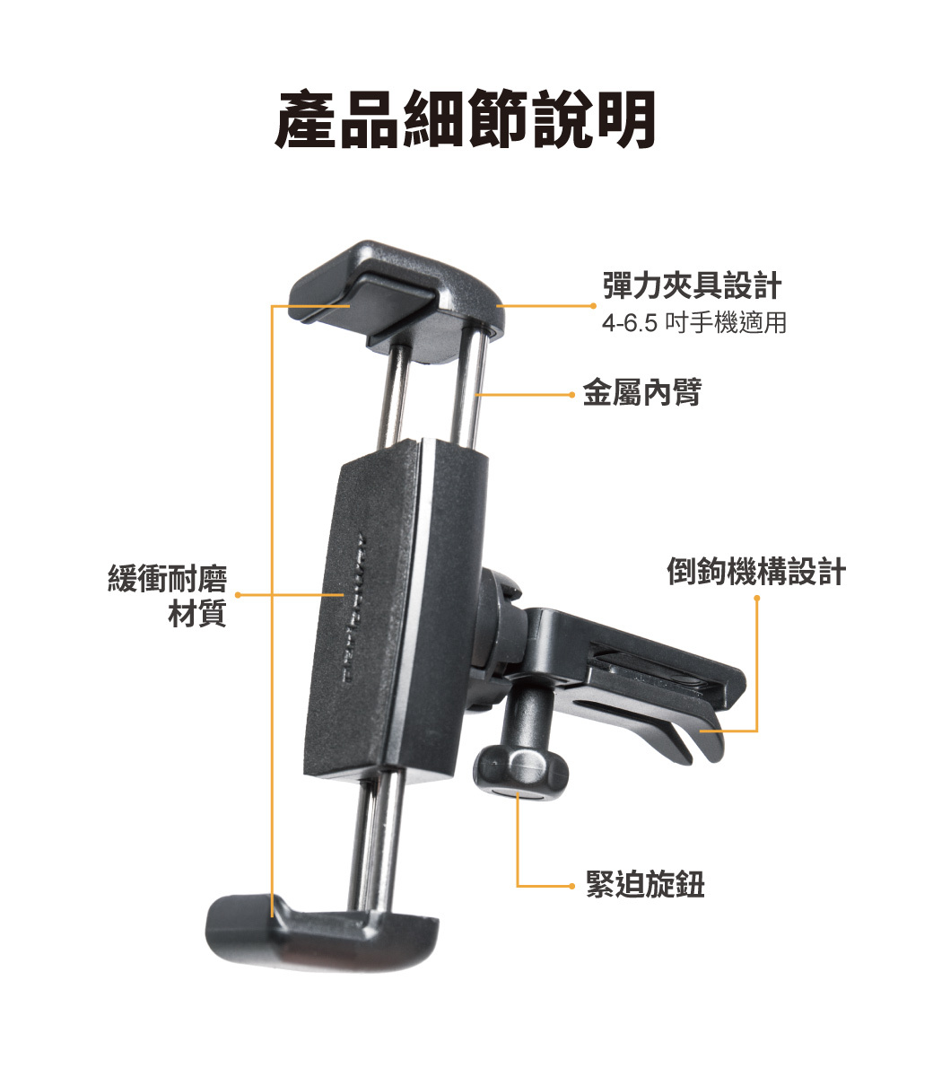 .4-6.7 吋手機適用,夾持寬度可達 96 mm
