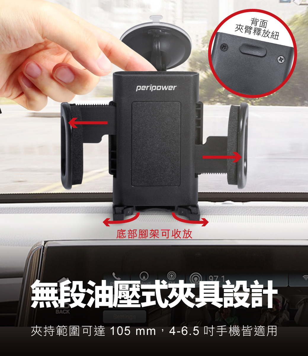 .夾持範圍可達 105 mm,4-6.7 吋手機皆可適用
