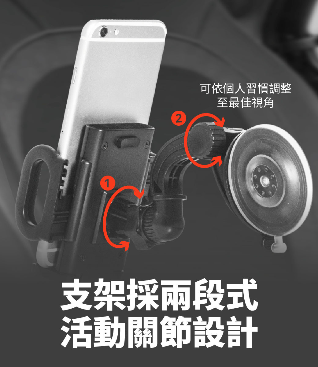 .支架採兩段式活動關節設計,可依個人習慣調整至最佳視角