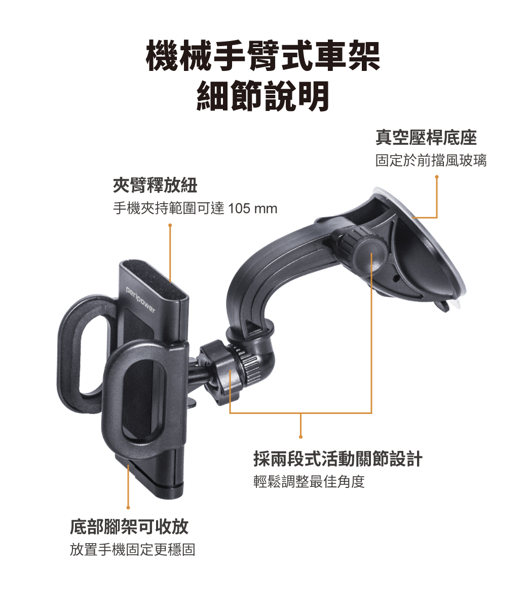 .4-6.7 吋手機皆適用,夾持寬度可達 105 mm