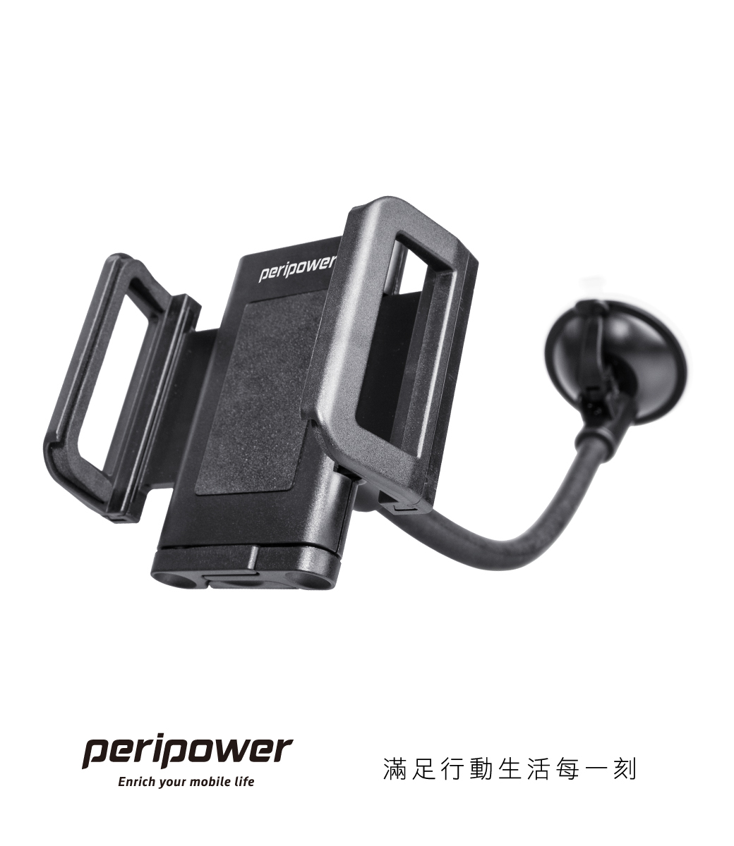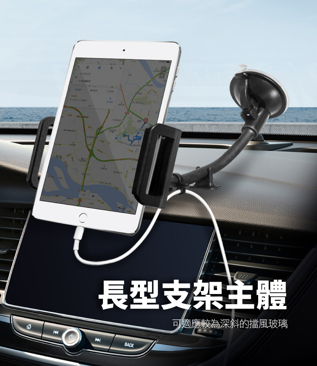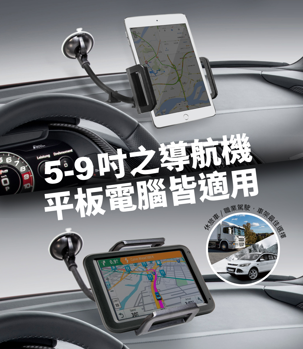隨附彎管固定座,可黏貼於儀表板搭配彎管支架使用