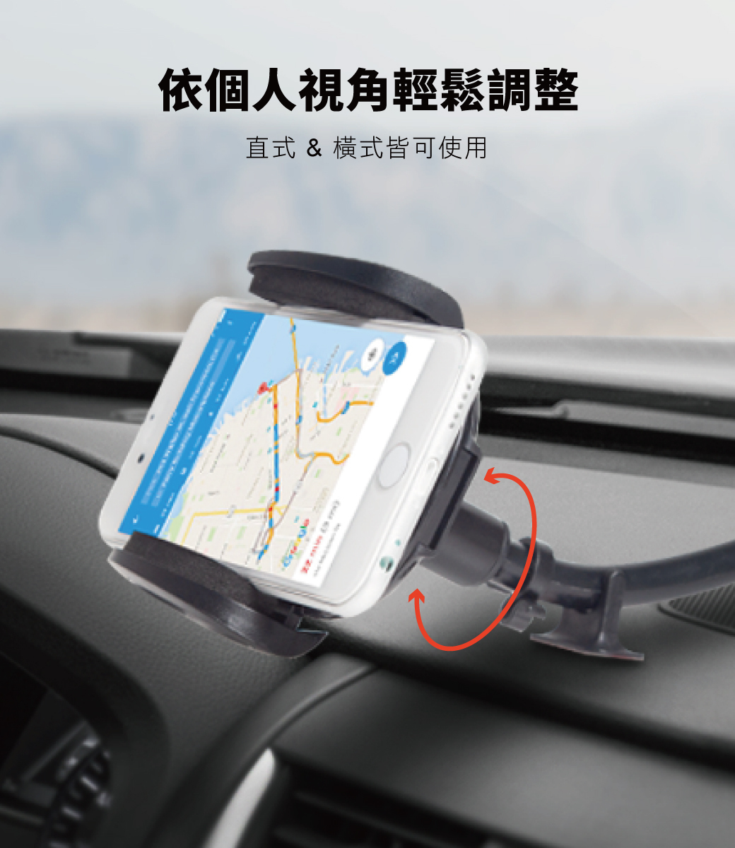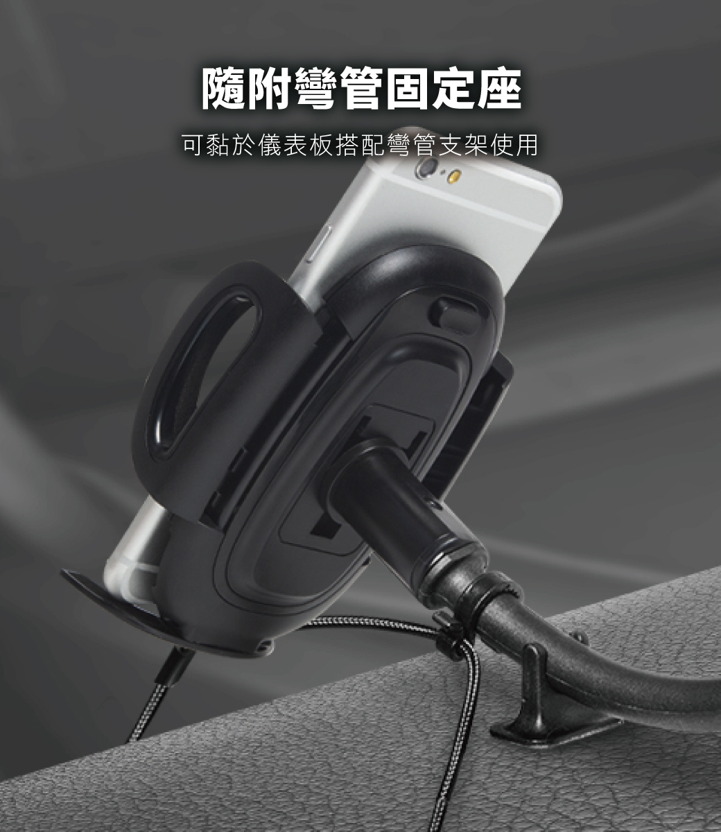 .隨附彎管固定座,可黏貼於儀表板搭配彎管支架使用