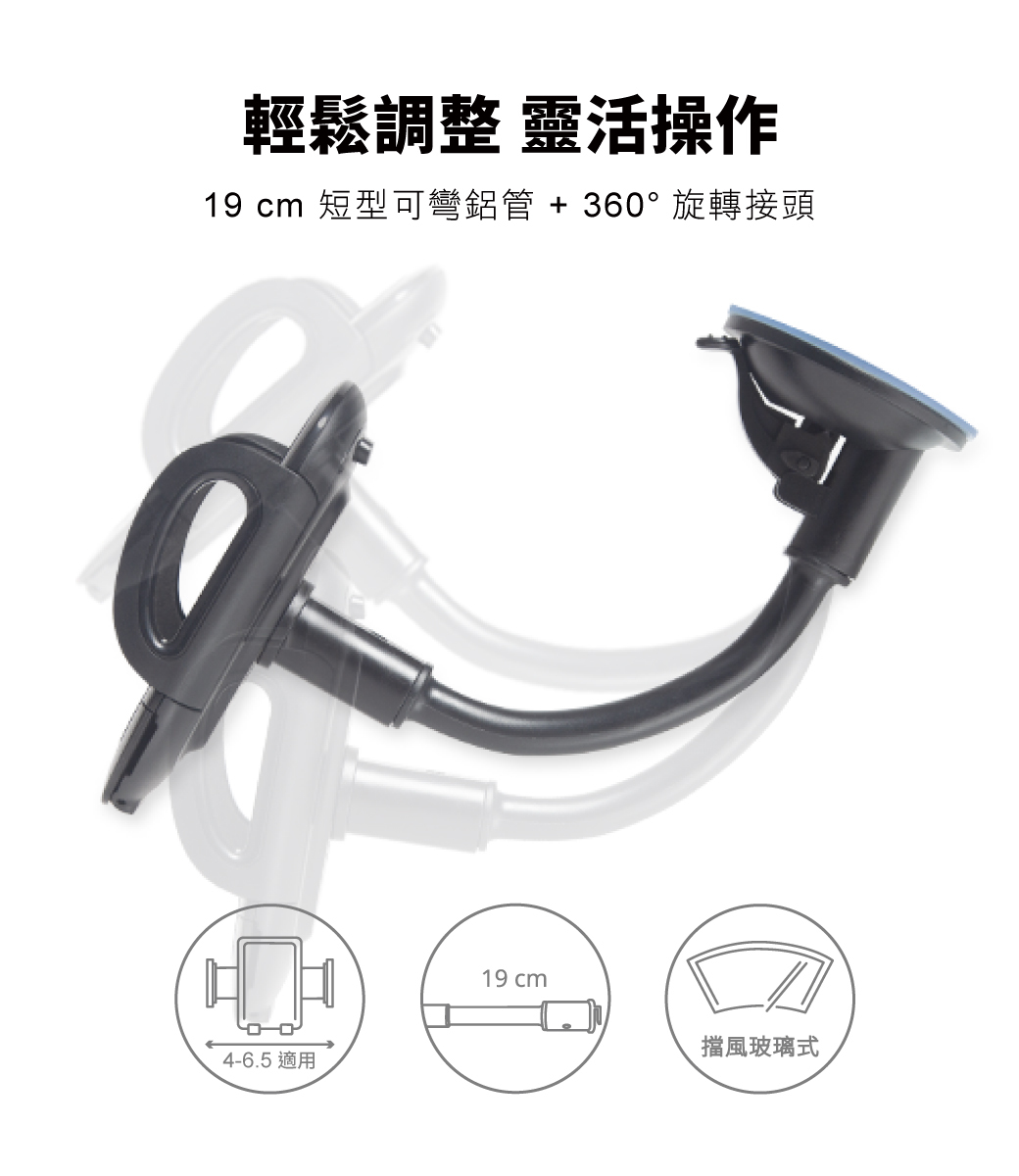 .19 cm 短型可彎鋁管 + 360 度旋轉接頭,輕鬆調整,靈活操作