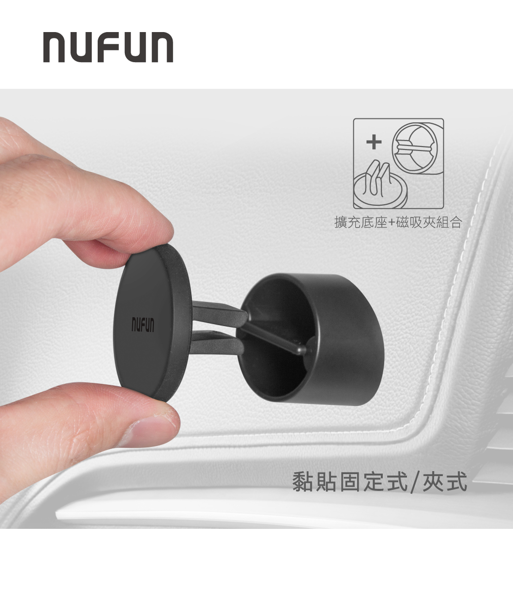 .磁吸夾 + 擴充底座,兩者搭配靈活運用,磁吸夾也可應用於適合的出風口葉片