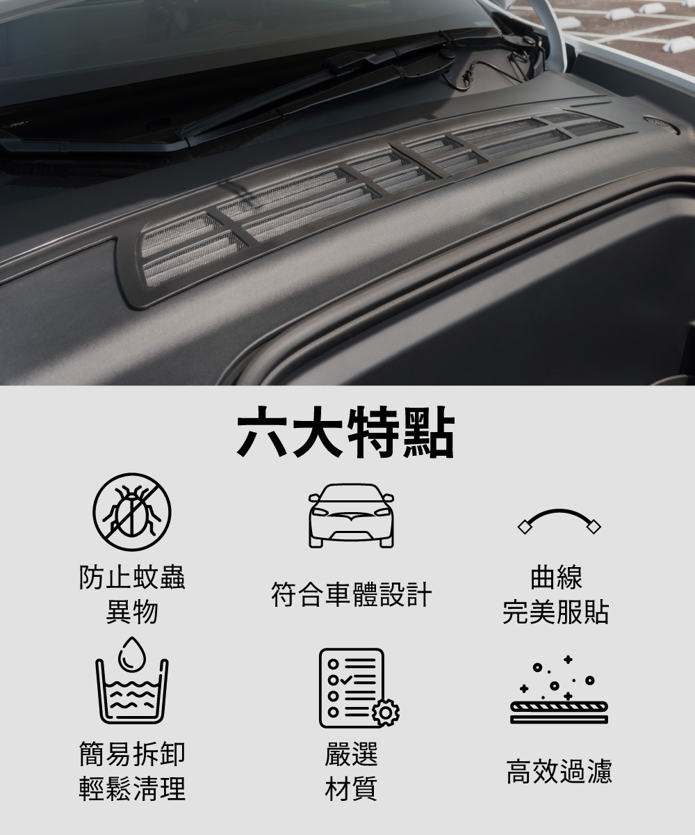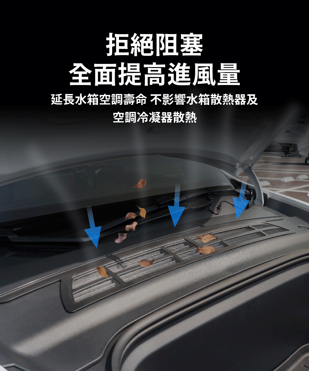 .Tesla Model Y 進風口並無濾網,當有落葉、飛蟲或其他異物時,容易被進風口吸入,難以清理。