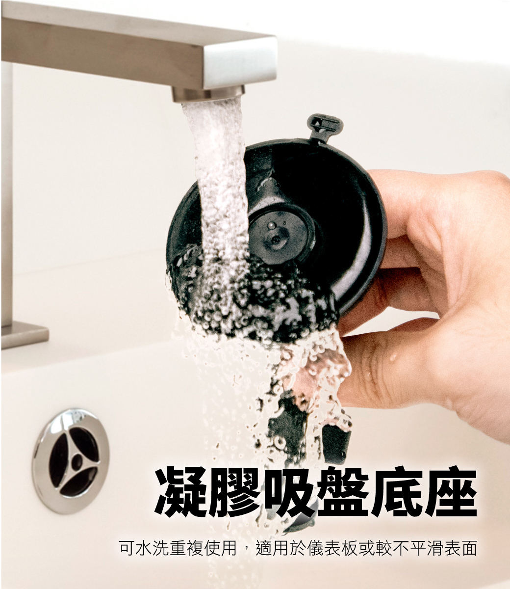 .凝膠吸盤底座可水洗重複使用,適用於儀表板或較不平滑表面