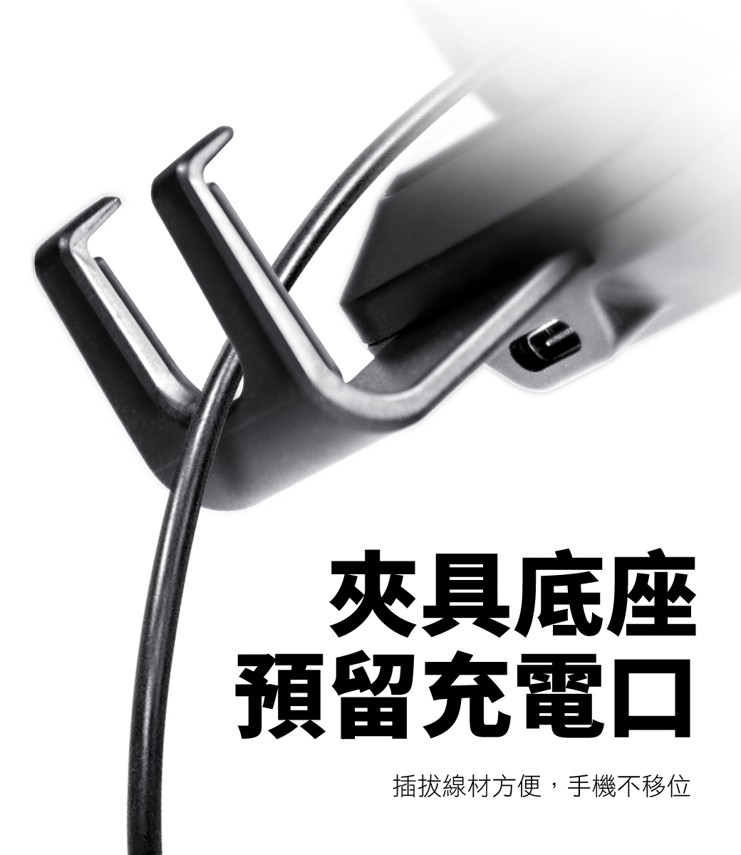 .夾具底座預留手機充電口,插拔線材方便,手機不移位