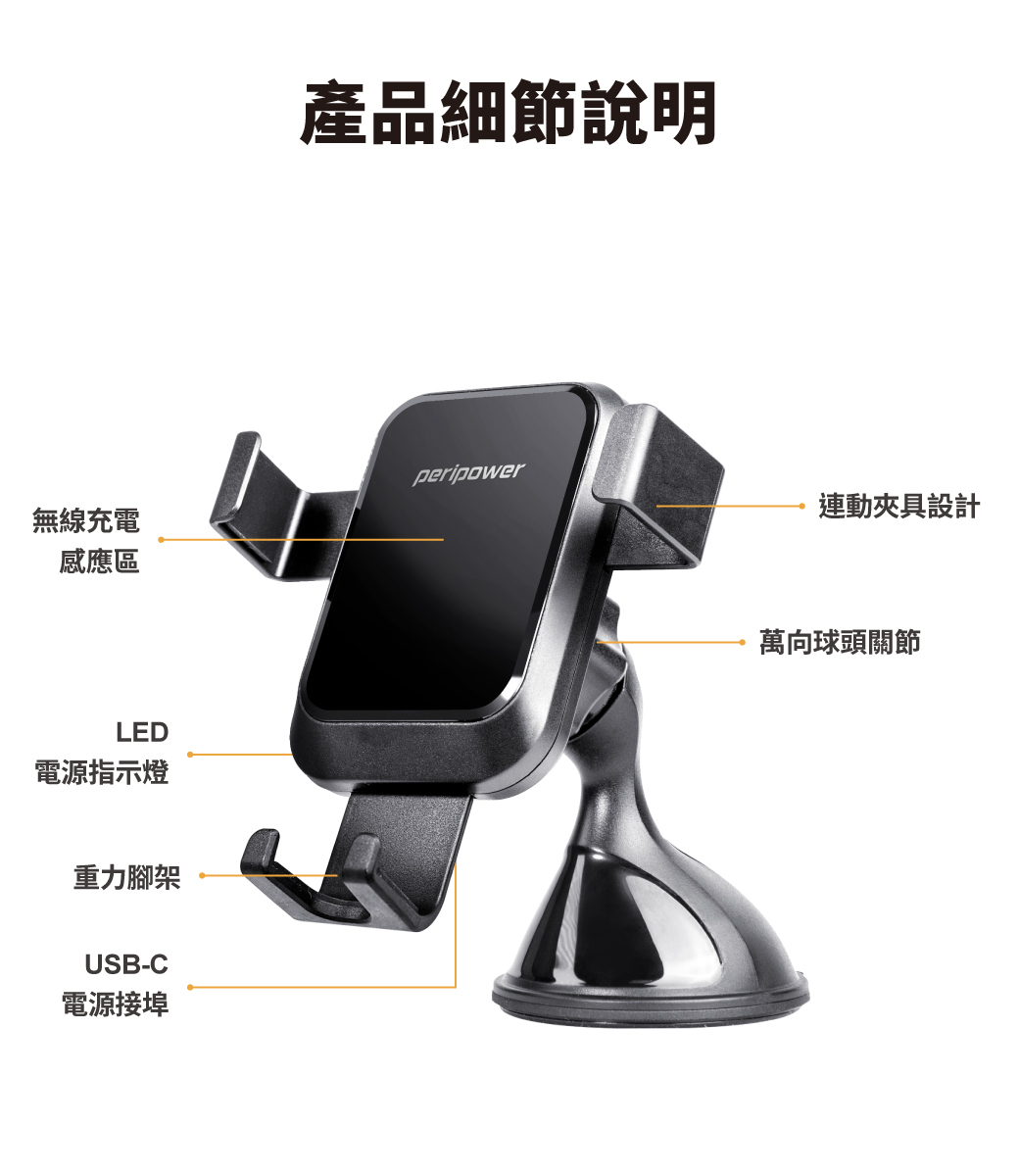 .夾具重力連動設計,單手放置手機,夾具即自然夾持固定