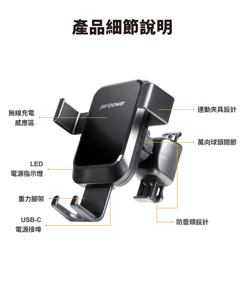 .夾具重力連動設計,單手放置手機,夾具即自然夾持固定