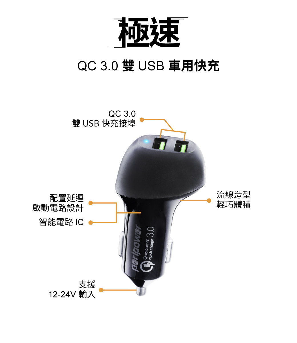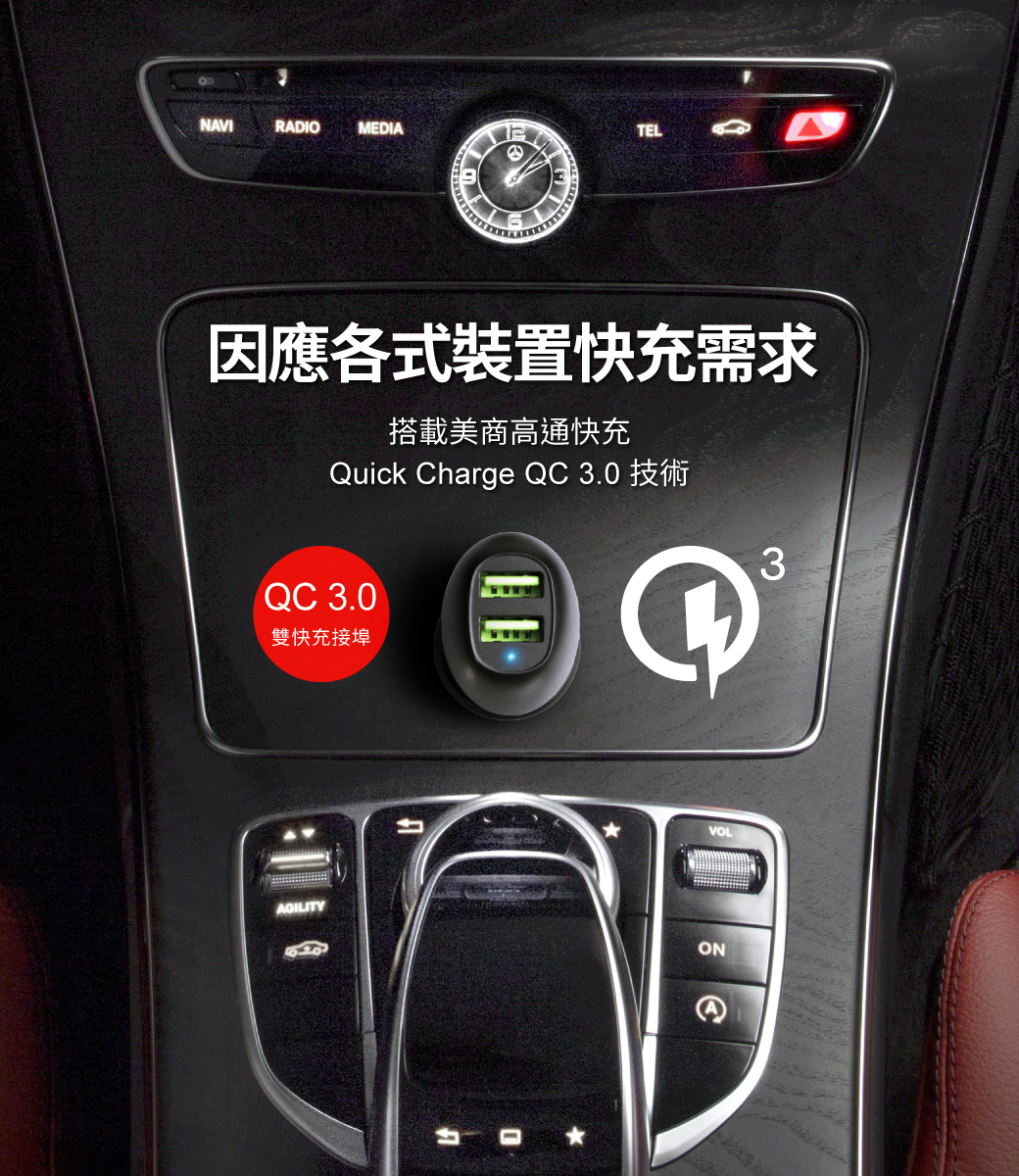 .搭載高通 QC 3.0 快充雙孔接埠,因應各式裝置快充需求