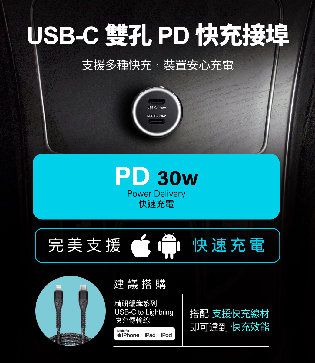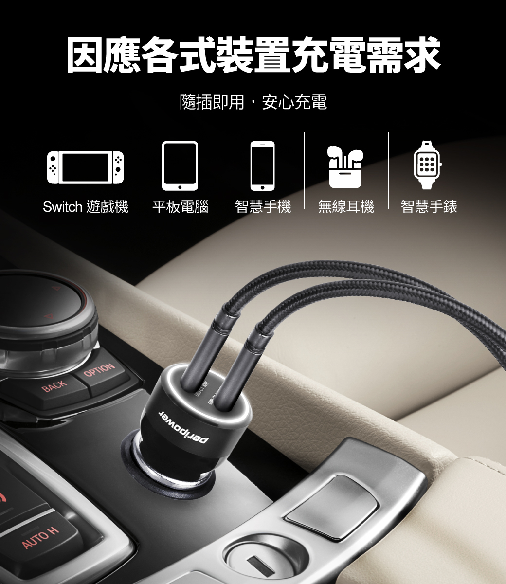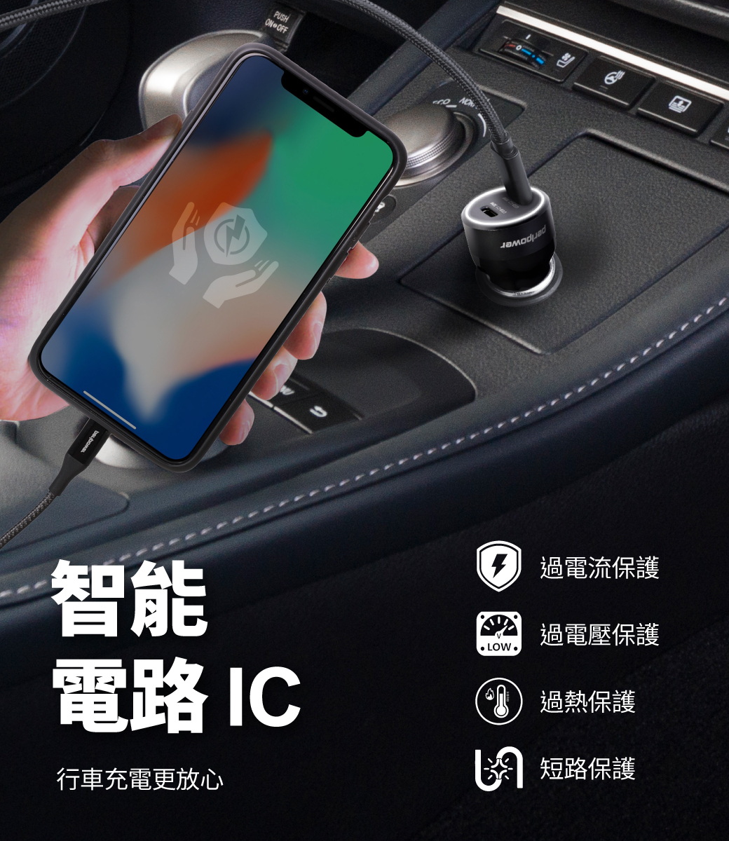 .智能電路 IC,自動辨識裝置給予最適電流/電壓,預防過溫、過載、過充、短路等狀況,行車充電更放心
