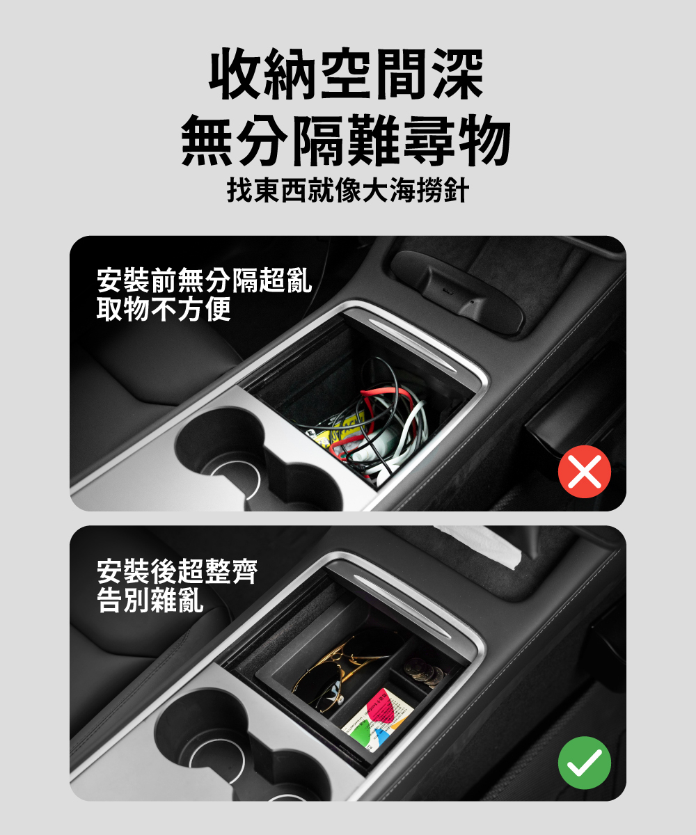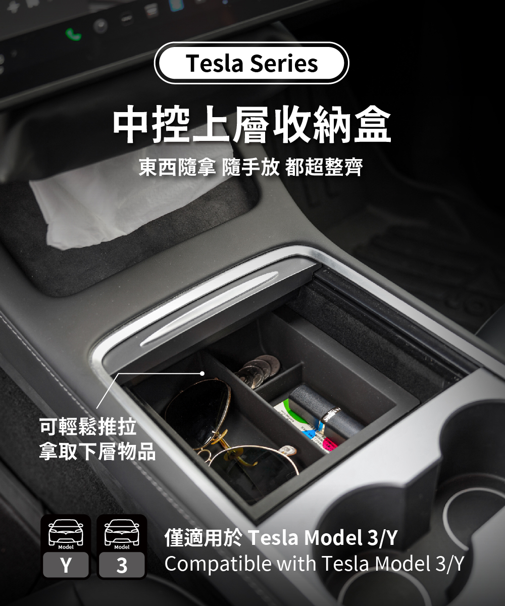 .增加儲物空間,可收納太陽眼鏡、特斯拉鑰匙、悠遊卡、零錢等隨身小物品。