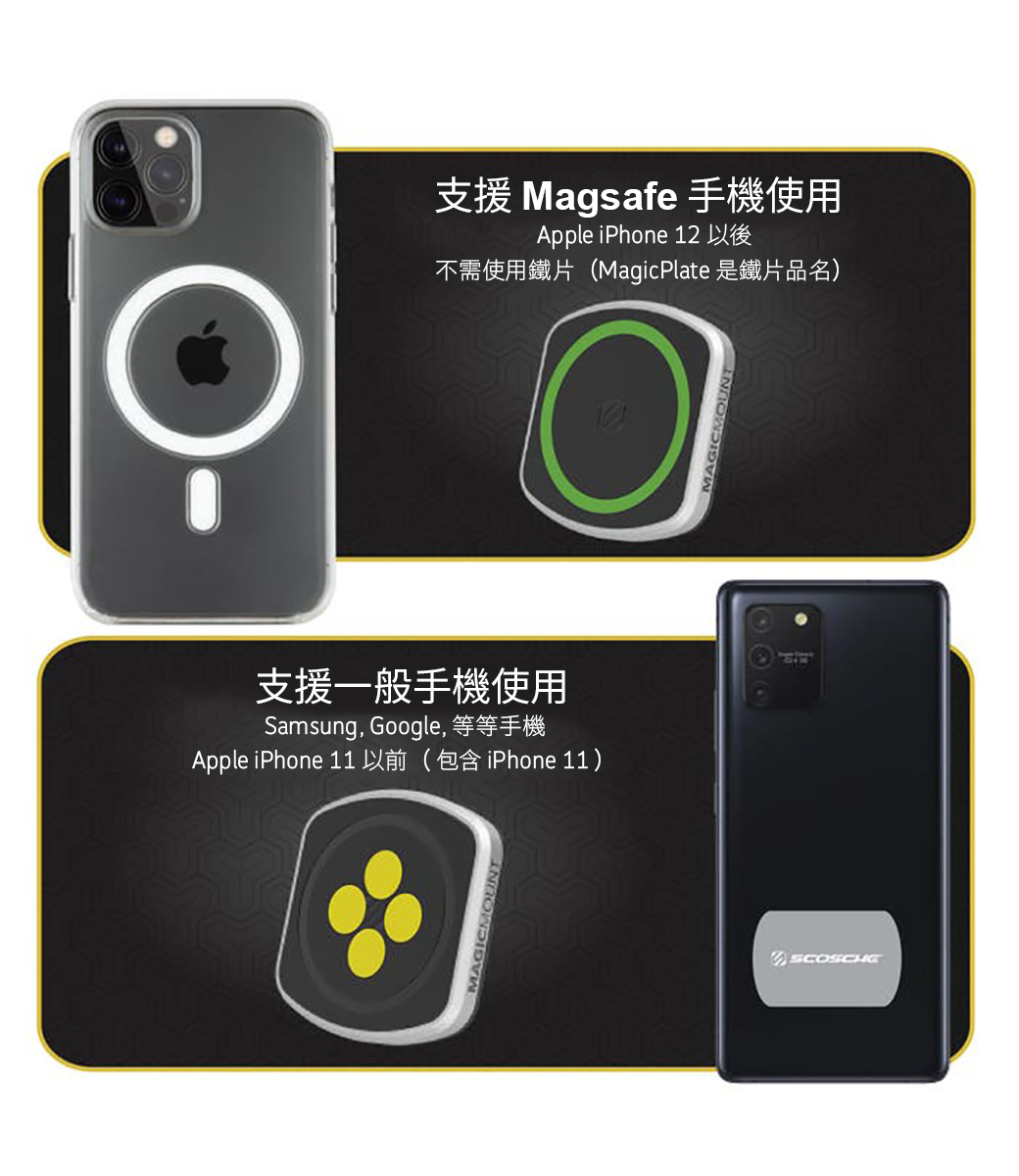 .專門設計適用於 iPhone 12 及更新版本的設備,裸機或使用 MagSafe 專用殼輕鬆吸附,無需使用轉接鐵片。