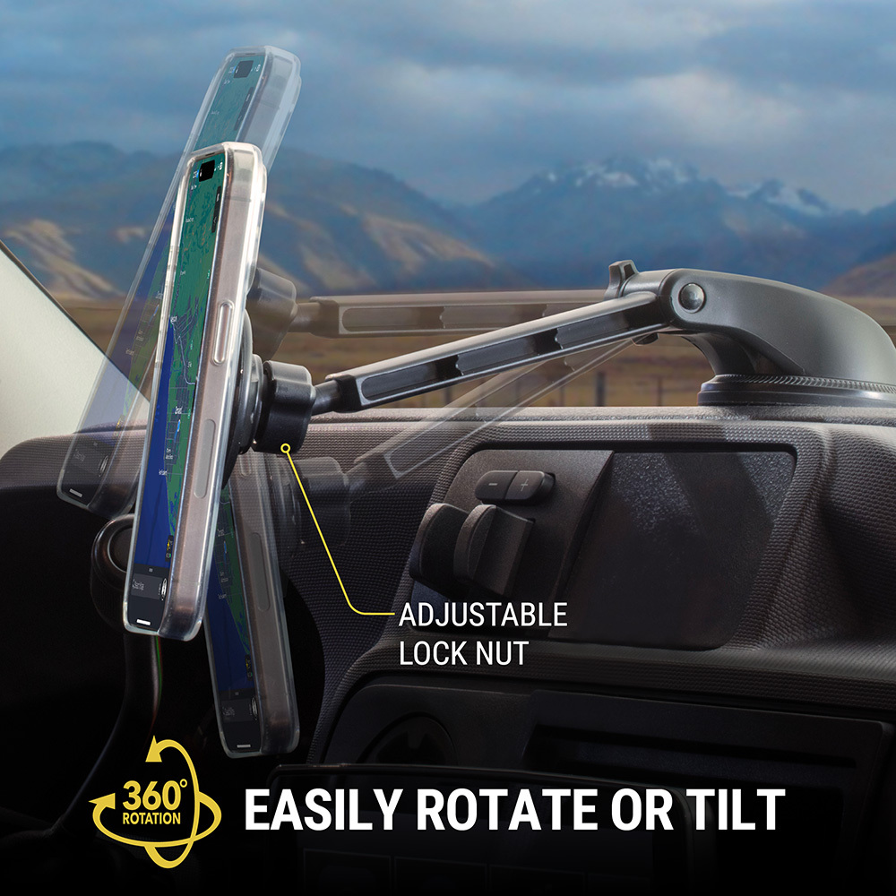 .使用 StickGrip™ 吸盤底座可以固定在儀表板上