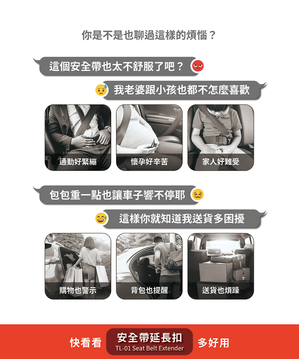 .有效增加安全帶的長度,為乘客提供更大的彈性空間,讓行車過程中享受更舒適的體驗。